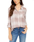 Style & Co Women's Sequined Plaid Shirt Beige Size PM