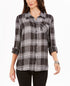 Style & Co Women's Sequined Plaid Shirt Black Size Petite Small