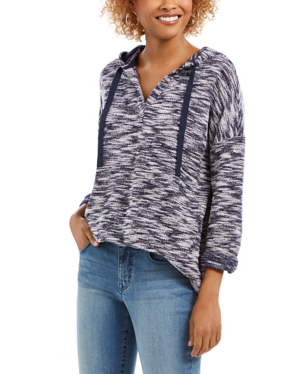 Style & Co Women's Space Dyed French Terry Hoodie Blue Size Small