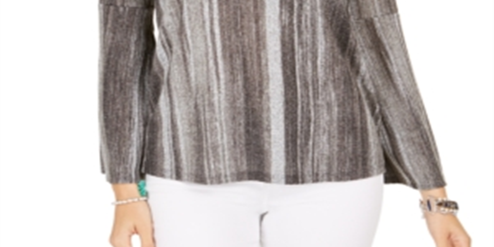 Style & Co Women's Striped Bell Sleeve Top Grey Size XX-Large