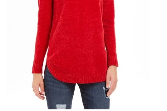 Style & Co Women's Textured Long Sleeve Cowl Neck Sweater Red Size Petite Large