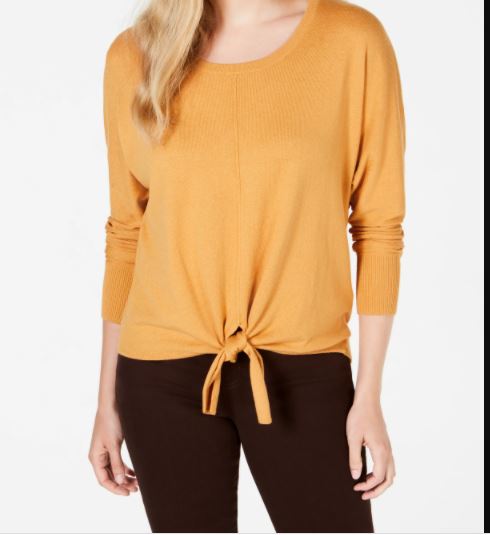 Style & Co Women's Tie Front Sweater Gold Size XX-Large
