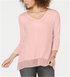 Style & Co Women's V Neck Chiffon Hem Top Pink Size Small
