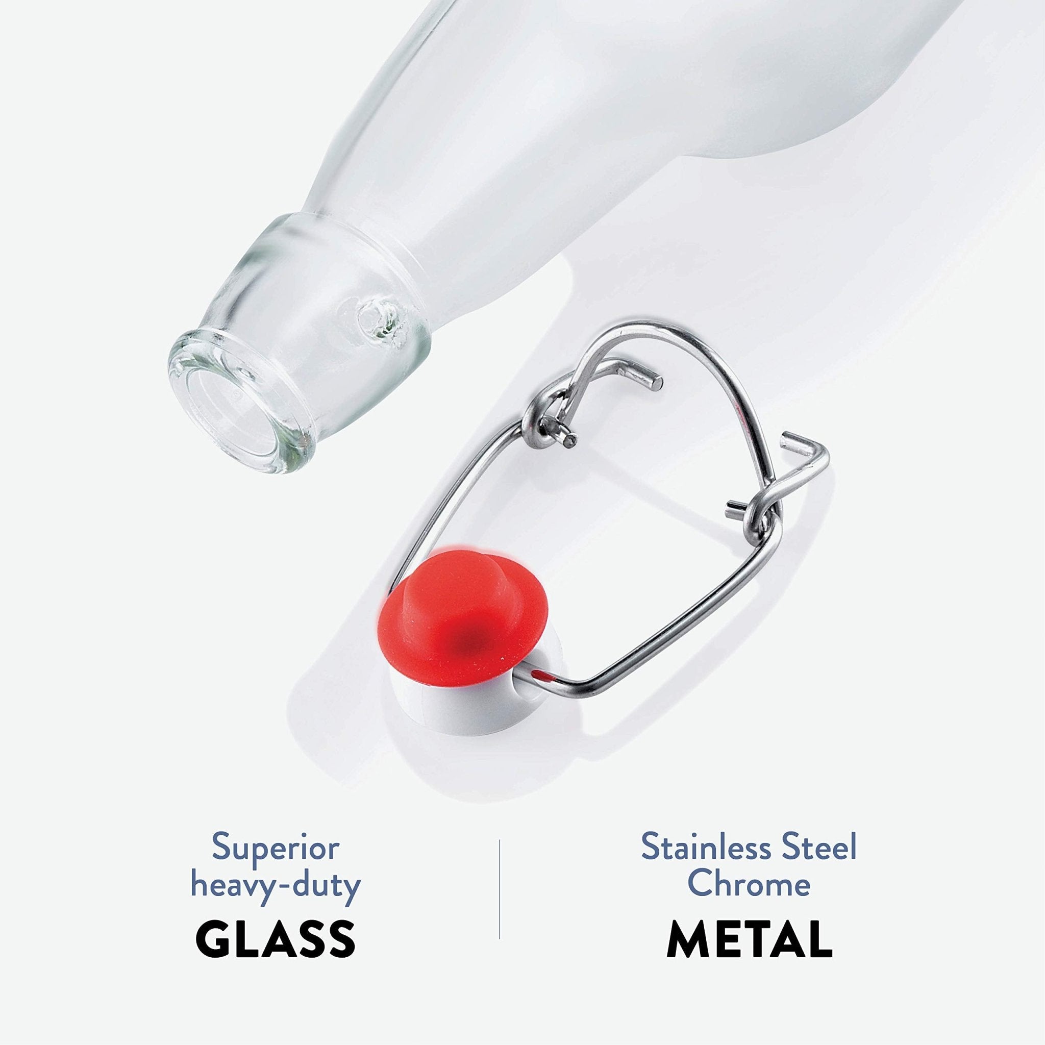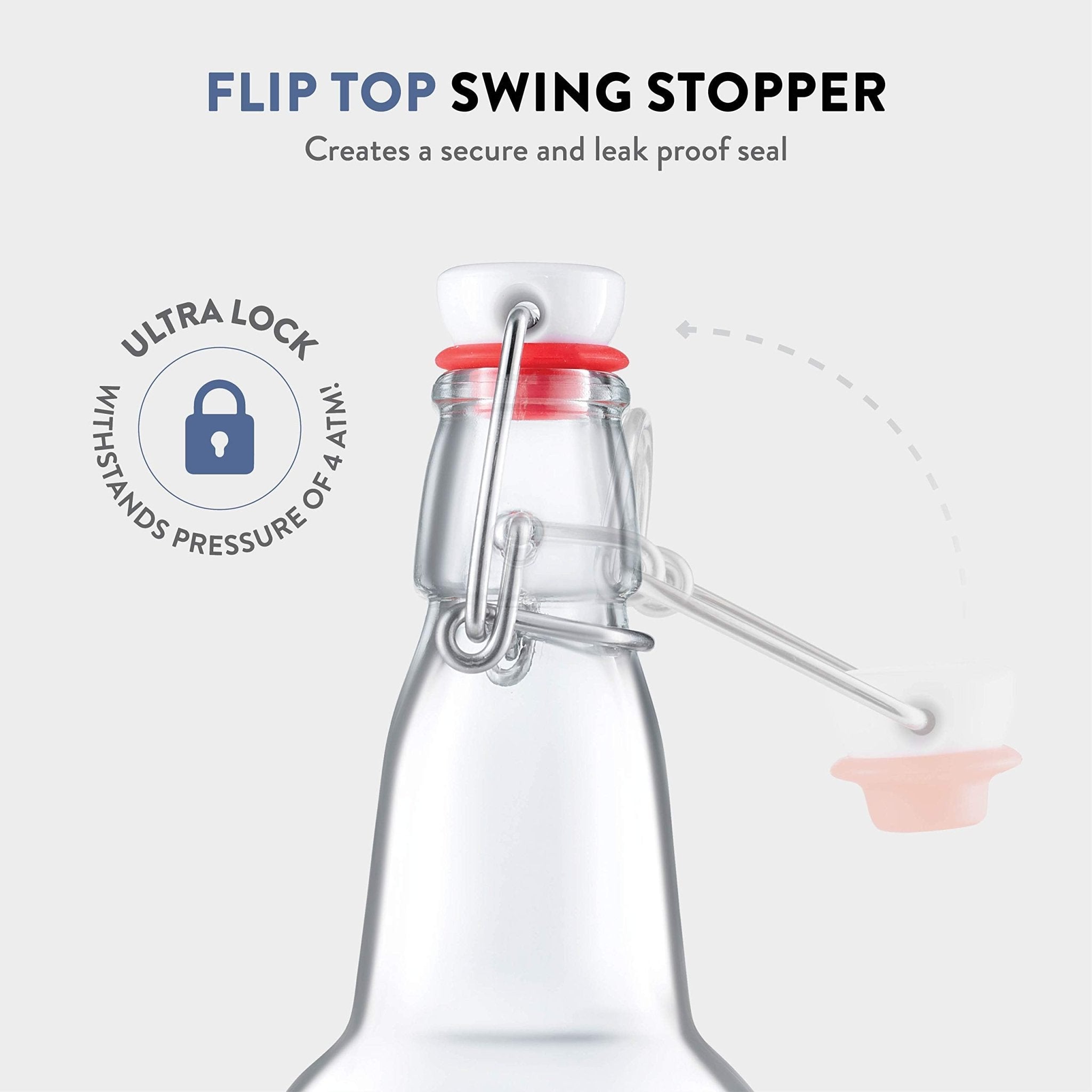 - AIRTIGHT SEAL - The swing-top lid on each glass bottle creates an airtight seal, preserving the freshness and fizz of its contents. The easy pouring spout also makes it the perfect dispenser for messy oil and vinegar.