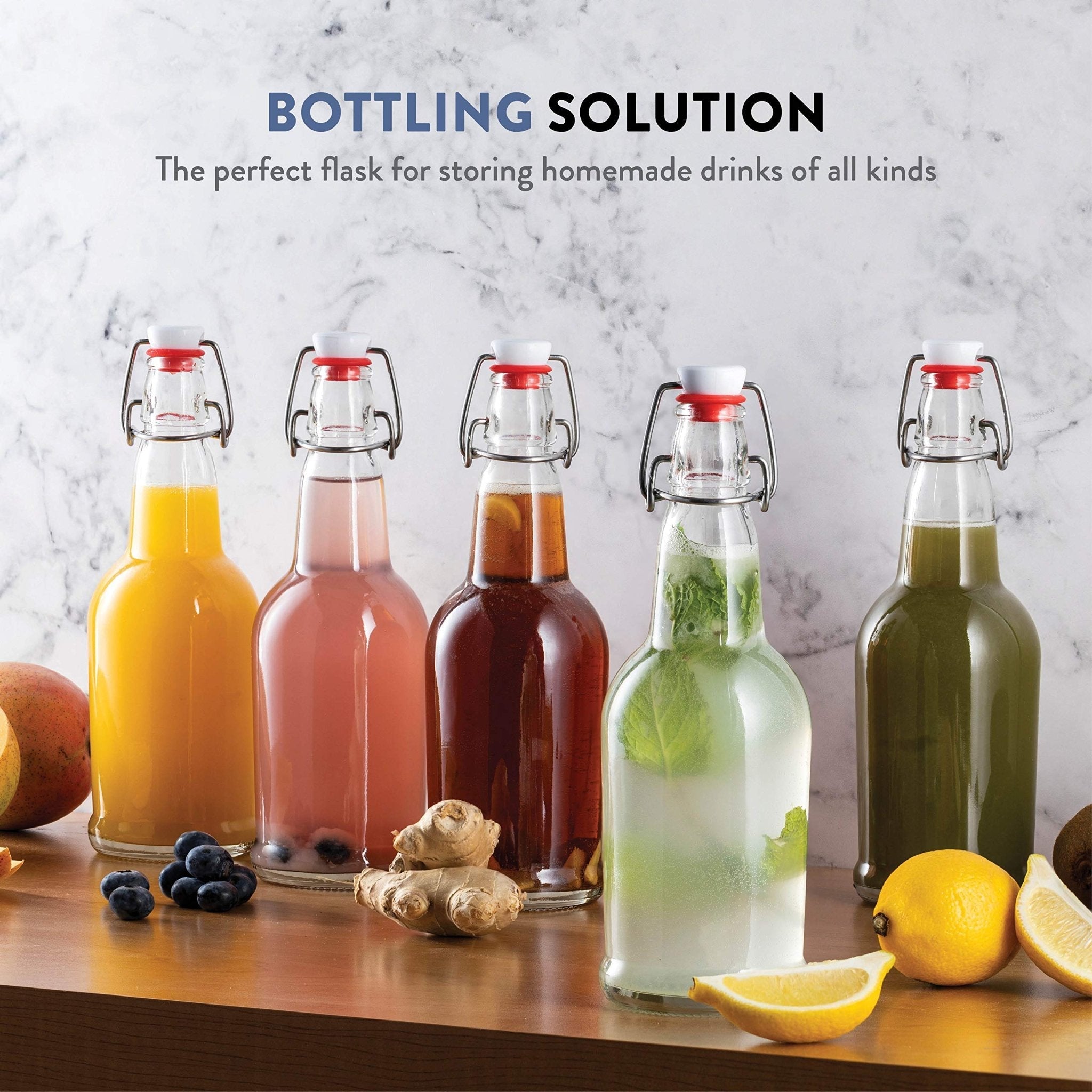 - BOTTLING SOLUTION - The perfect glass bottles with lids for storing homemade drinks of all kinds, especially carbonated ones. Use it to bottle, serve, and display wine, soft drinks, water, beer, juice, and smoothies.