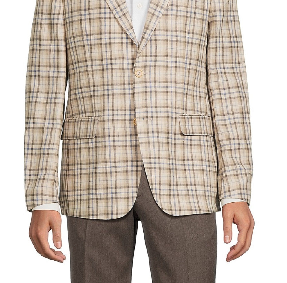 Tallia Men's Slim Fit Plaid Blazer Brown Size 40