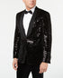Make sure you shine at your next sophisticated soirée with the shimmering velvet and sparkling sequined pattern of this slim-fit black dinner jacket from Tallia. | Slim fit through the shoulders| chest and waist with higher armholes and slimmer sleeves | Jacket sizing is indicated by a number and a letter; Number refers to chest size| Letter refers to length of Jacket based upon height: S=5'7" and under; R=5'8"-5'11"; L=6' and up| Shawl lapel| One-button closure; four-button cuffs