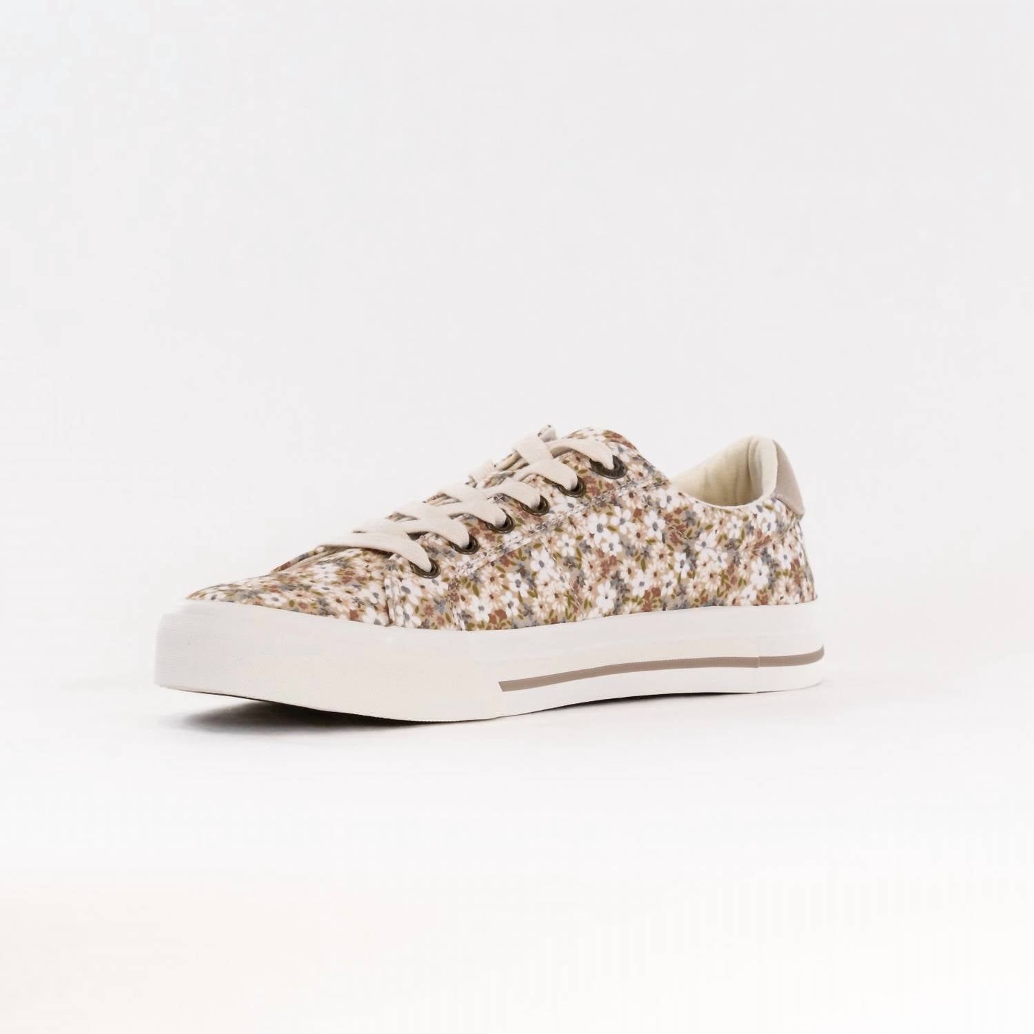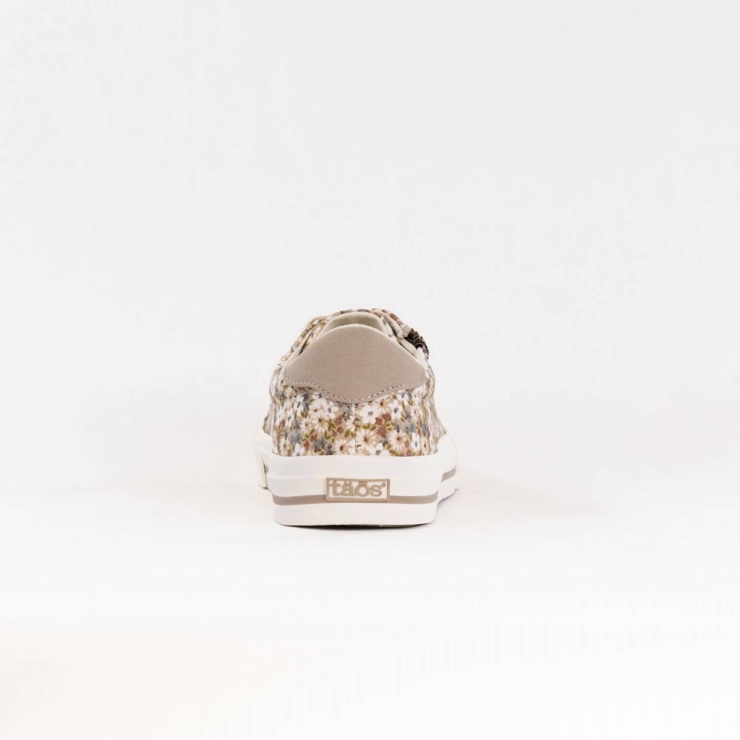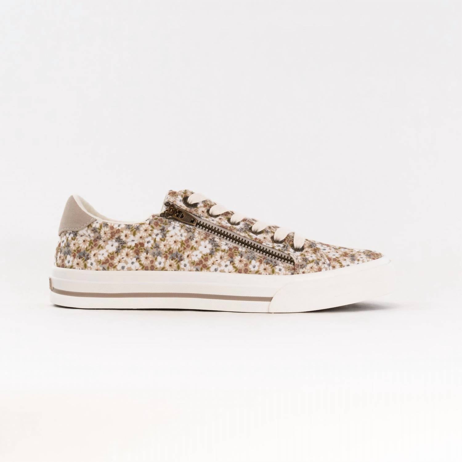 Get your daily steps in with these adorable sneakers. Step into comfort and style with the Women's Z Soul Canvas Sneakers by Taos, presented in a delightful Natural Floral Multi pattern. These sneakers boast an upper and lining crafted from breathable canvas, ensuring lightweight wear at just 11 oz per shoe. With a flexible, durable rubber outsole and a modest 1 1/8" heel height, they provide excellent arch and metatarsal support thanks to the Curves & Pods premium removable footbed, treated with an antimicrobial shield. Closure: Convenient outside zipper with lace-up adjustability for a custom fit.
