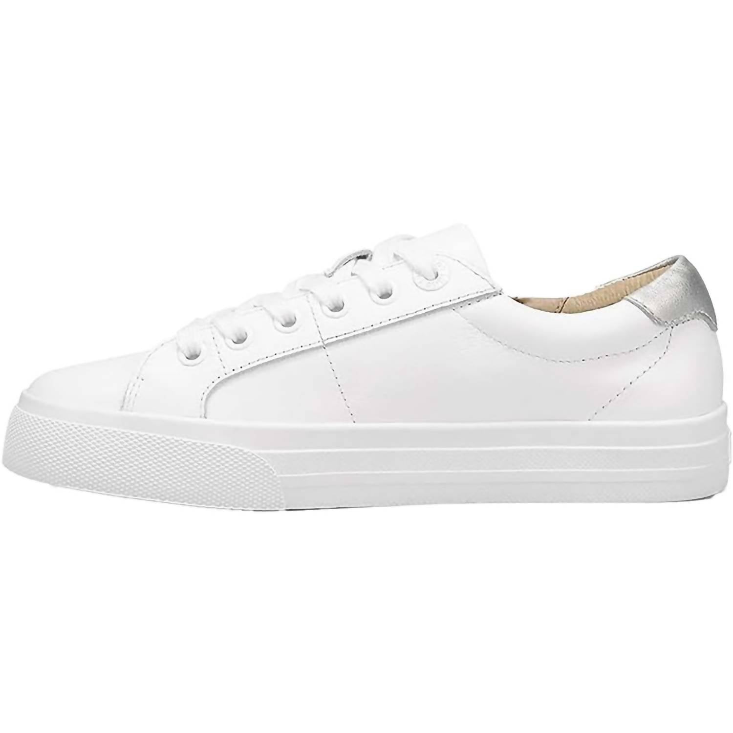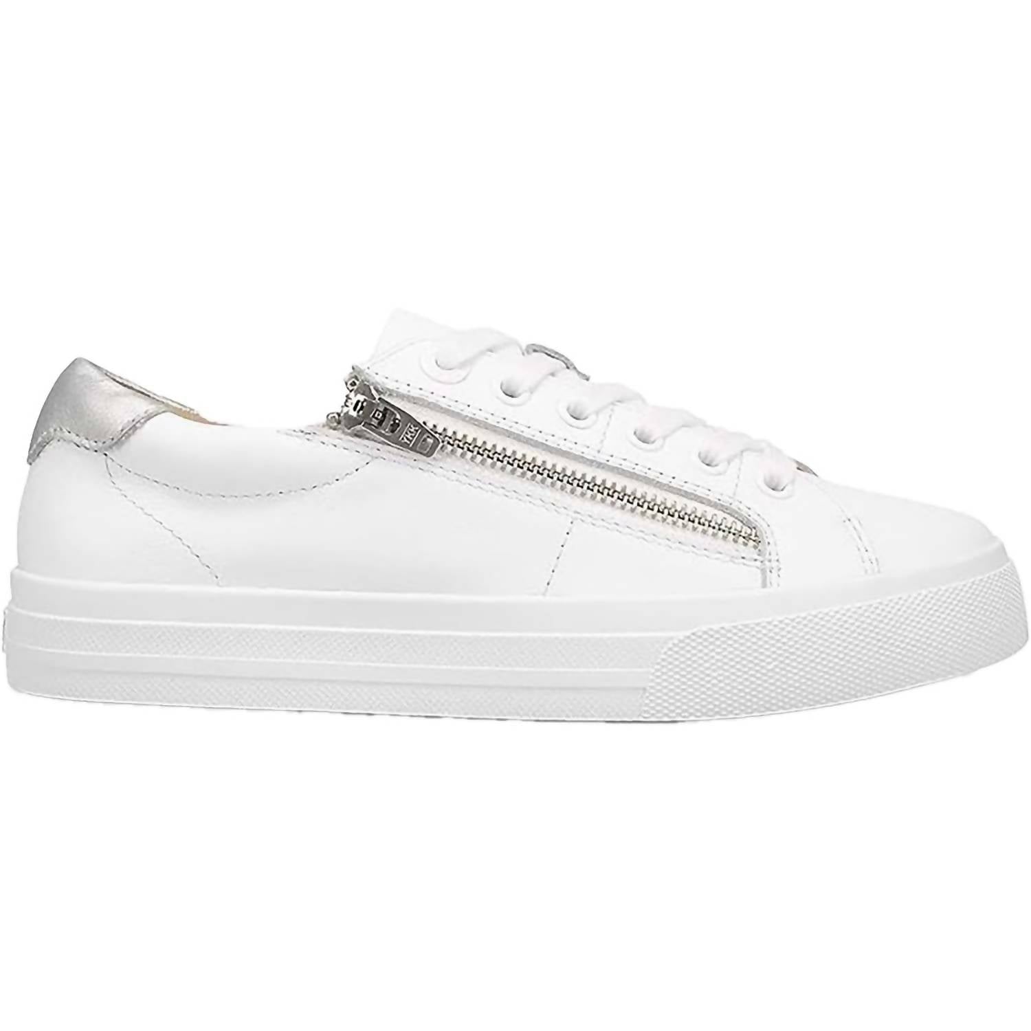 Get your daily steps in with these adorable sneakers. Introducing the Women's Z Soul Lux Sneakers by Taos, a fusion of the iconic Z Soul and Plim Soul Lux styles for minimalist, travel-friendly fashion. These shoes, crafted with a leather upper in a chic white and silver combination, feature an outside zipper for easy wear and adjustable laces for a custom fit. Designed for ultimate comfort, they include a Curves & Pods® premium removable footbed providing superior arch and metatarsal support and are complemented by lightweight construction and molded EVA midsoles with rubber outsoles. Enjoy added benefits like antimicrobial-treated footbed and forefoot cushioning, perfect for spring adventures and Thanksgiving holidays. Heel height: Flat (1" & under).
