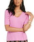 Thalia Sodi Women's Button Sleeve V Neck Top Pink Size Large