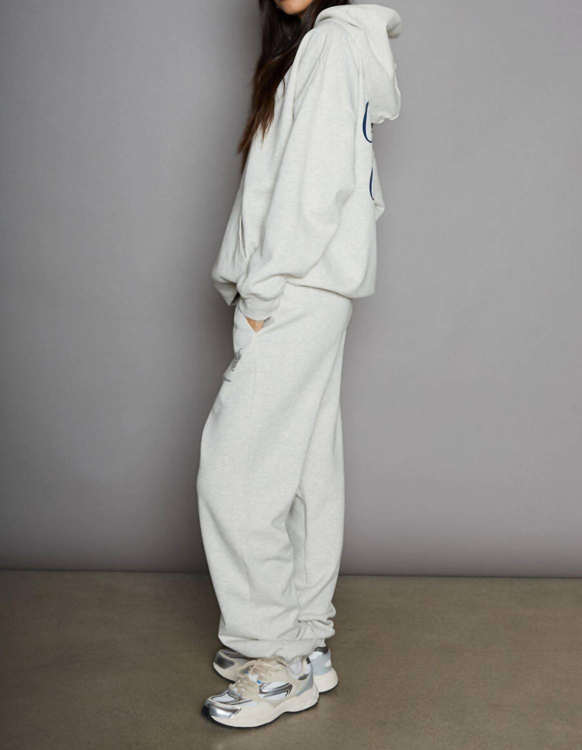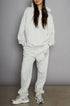 Embrace laid-back style with the Things Between Out Of Office Top And Pant Set, a cozy loungewear collection in a heather oat color. This cotton blend hoodie and sweatpants set features long sleeves and is crafted from soft fleece lining for ultimate comfort. The top length is 23.5 inches, while the bottoms measure 42 inches, both adorned with a playful graphic design. With a hooded neckline and elastic waistband on the pants, this ensemble is perfect for downtime or casual outings.