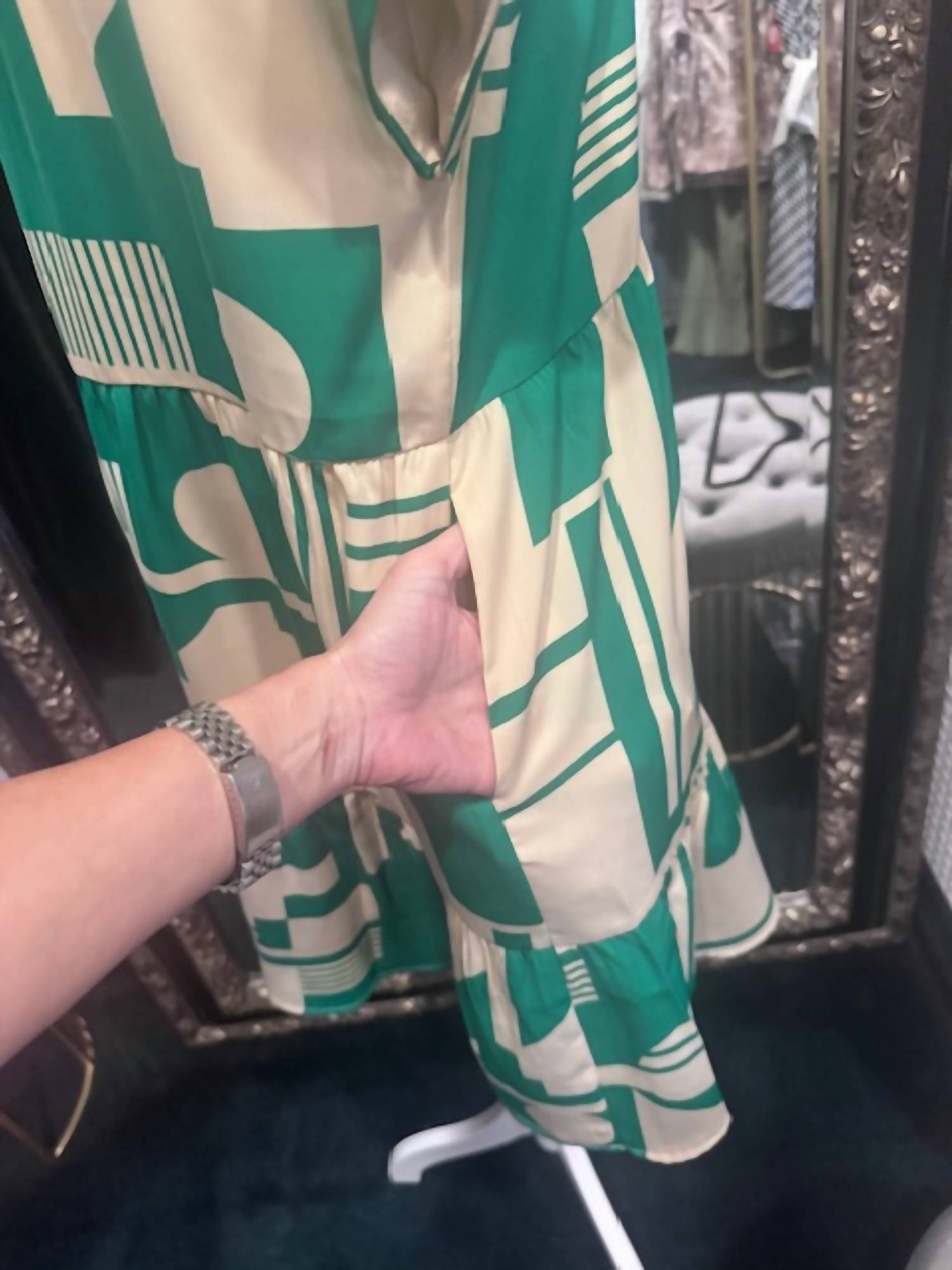 The perfect length dress does exist. Short Sleeve Print Midi Dress. It has a fun green print and pockets!
