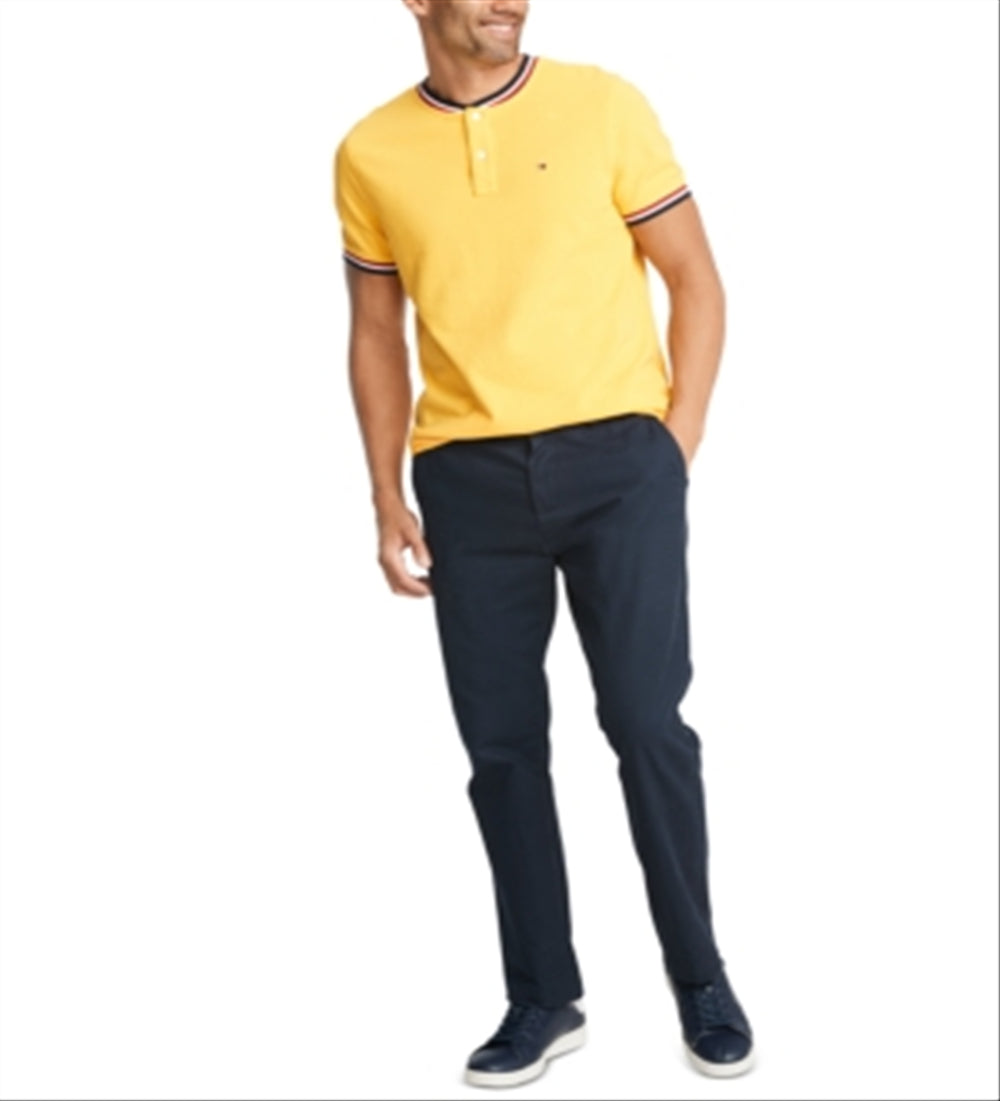 Tommy Hilfiger Men's Eaton Custom Fit Tipped Collarless Polo Shirt Yellow Size Small