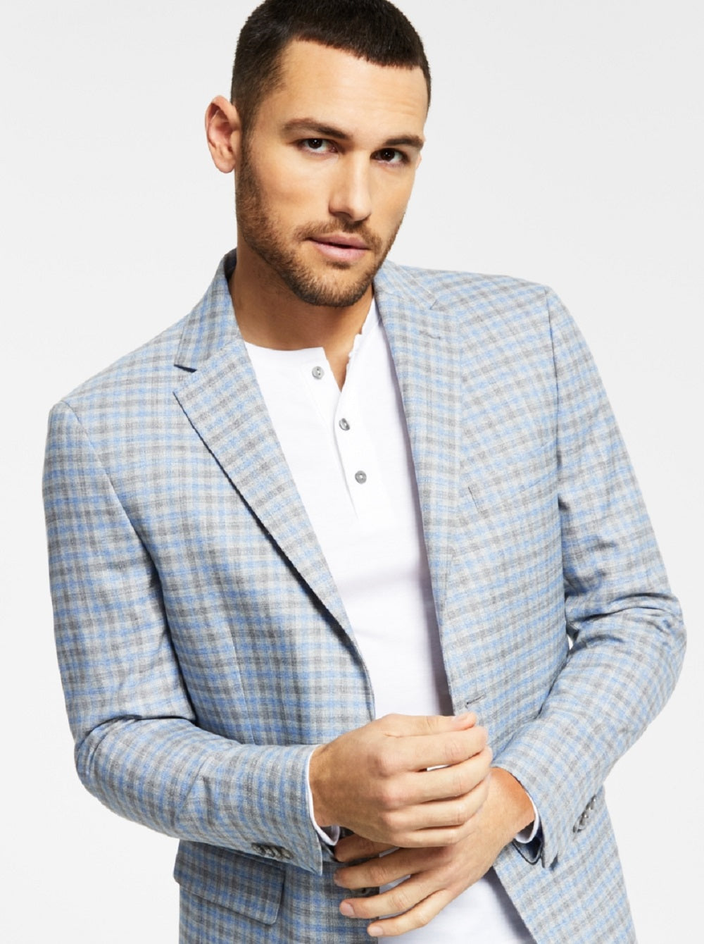 Tommy Hilfiger Men's Modern Fit Check Blazer Gray Size 36