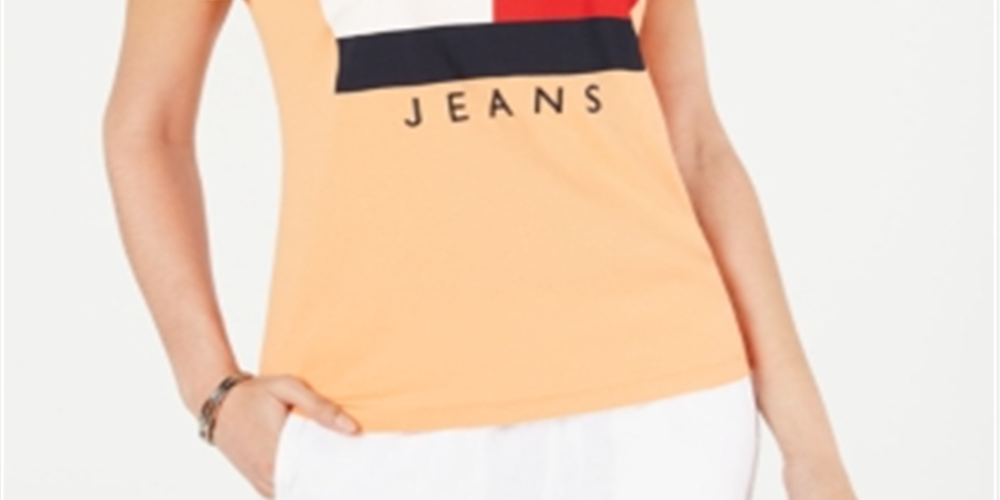 Tommy Hilfiger Women's Cotton Embroidered Logo T-Shirt Orange Size Large