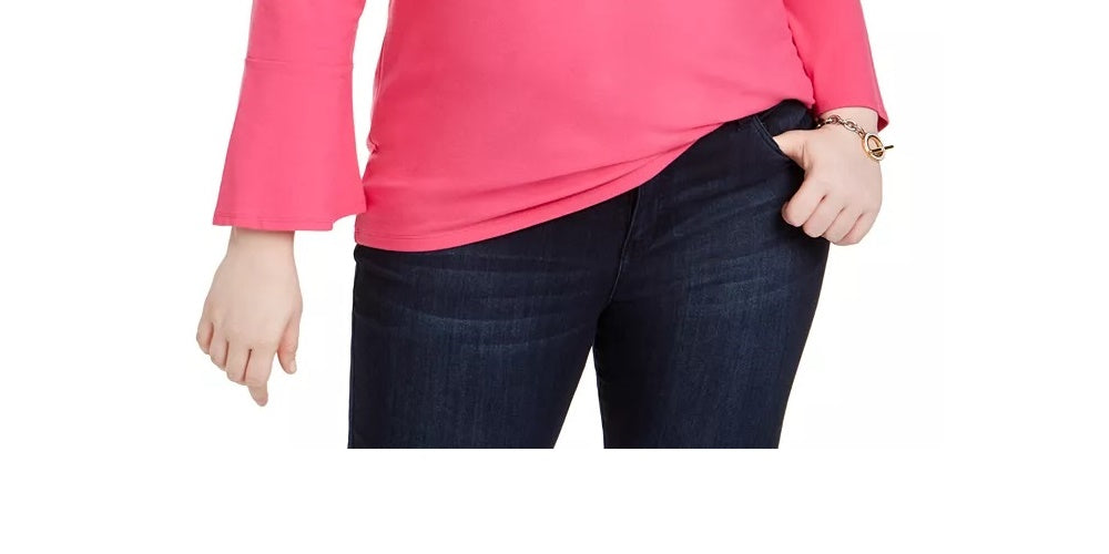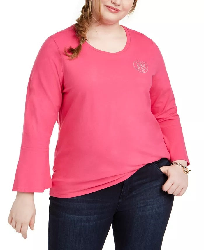 Tommy Hilfiger Women's Embellished Bell Sleeve Top Pink Size 1X