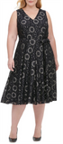 Approx. 43-3/4" long from center back neck to hem. Length is based on size 16W and varies 1/4" between sizes|V-neck; fit & flare silhouette|Back zipper closure|Self tie sash at waist|Nylon/polyester/spandex; lining: polyester/spandex