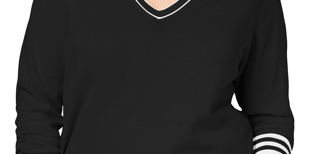 Tommy Hilfiger Women's Plus Cotton V Neck Sweater Black Size 1X