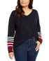 Tommy Hilfiger Women's Plus Size Ivy Striped-Sleeve Sweater Blue Size 0X
