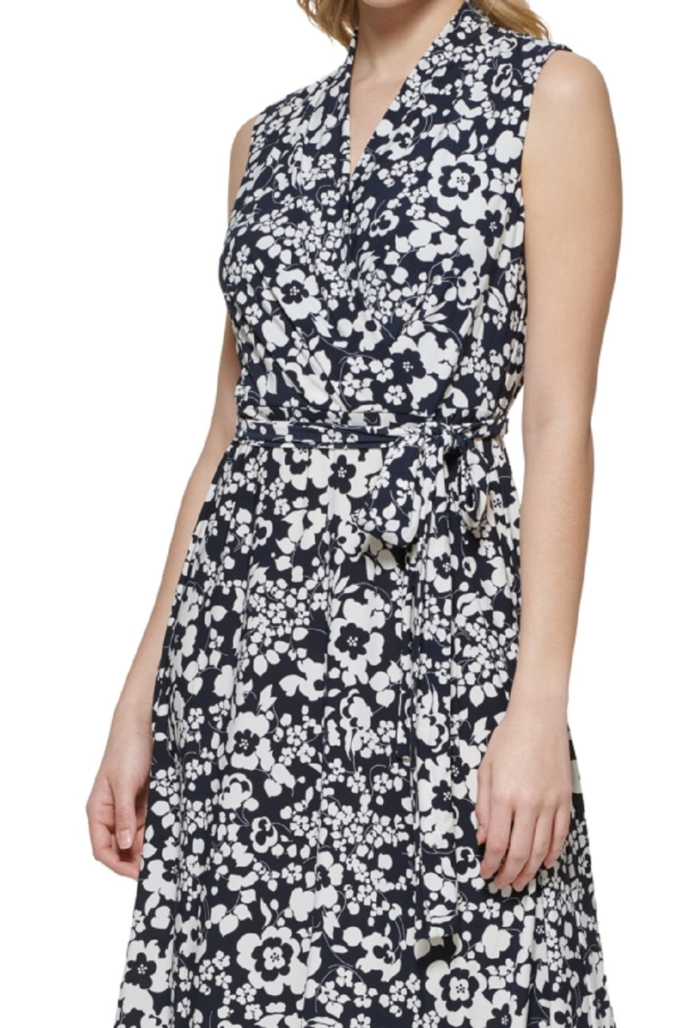 Tommy Hilfiger Women's Printed Faux Wrap Midi Dress Blue Size 14