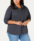 Tommy Hilfiger Women's Roll Tab Button Up Shirt Black Size 2X