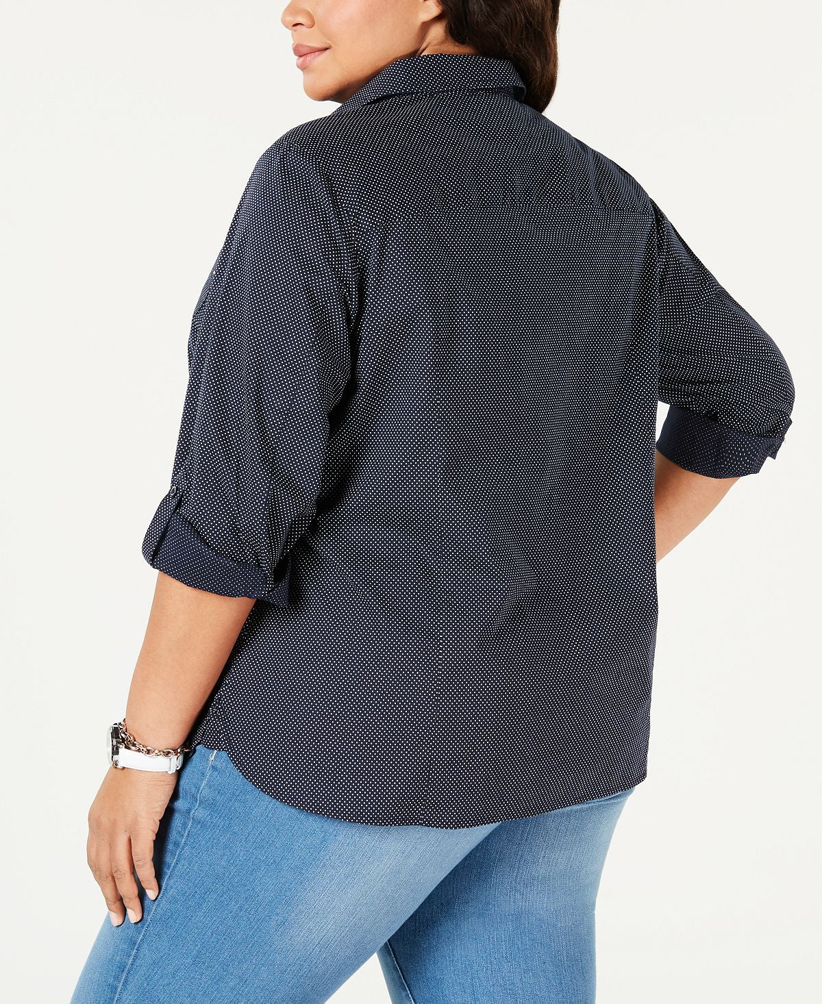 Ask a question about Tommy Hilfiger Women's Roll Tab Button Up Shirt Black Size 2X