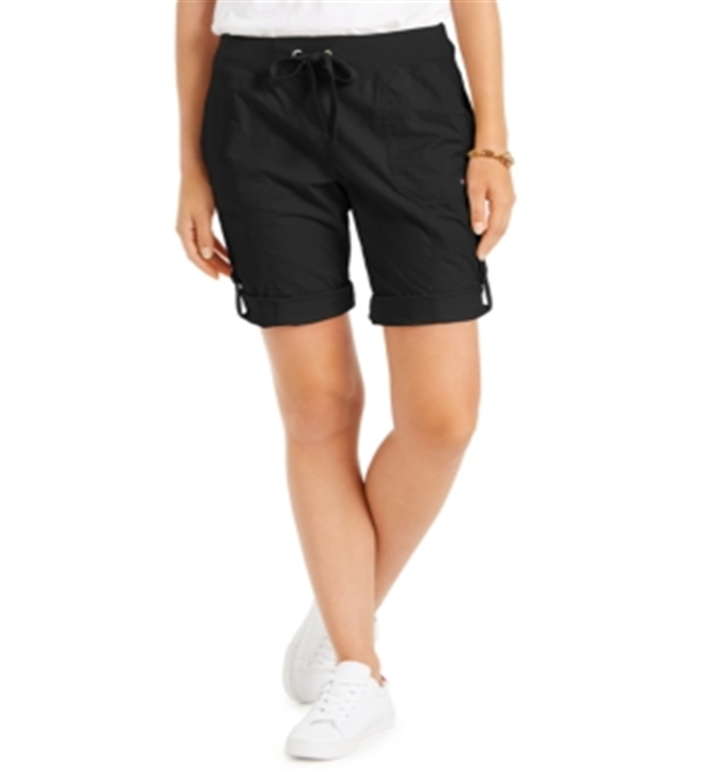 Tommy Hilfiger Women's Roll Tab Drawstring Shorts Black Size X-Large