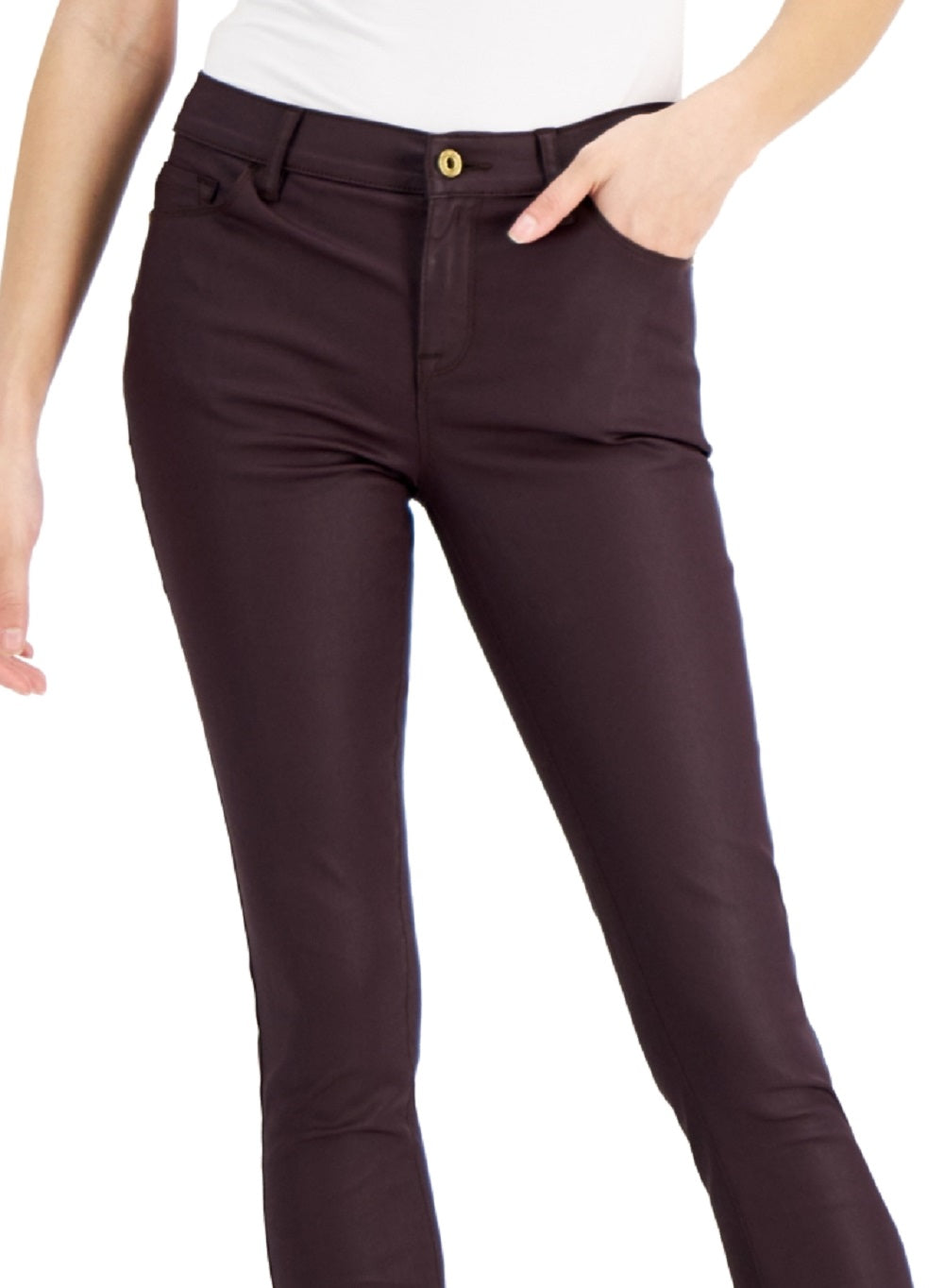 Tommy Hilfiger gives your denim an undeniable boost of edge and appeal with these skinny jeans in a sleek wax finish. | Approx. inseam; 29| Mid-rise; front; approx. 9-1/4; skinny leg| Zipper fly; button closure; belt loops| | Cotton/polyester/elastane| Machine washable