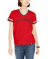 Tommy Hilfiger Women's Sport V-Neck Graphic T-Shirt Red Size Large