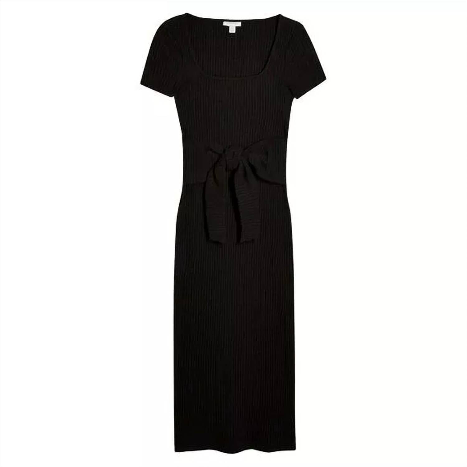 Just add slides or mules and you are good to go. Elevate your everyday style game in this shapely ribbed maxi designed with a shaping waist tie and an airy side slit. Slips on over head Scoop neck Short sleeves Attached waist tie 94% cotton, 6% elastane Machine wash, dry flat Length 47.5"