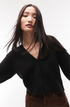 Topshop Waffle Knit Crop Cardigan In Black Size X-Small