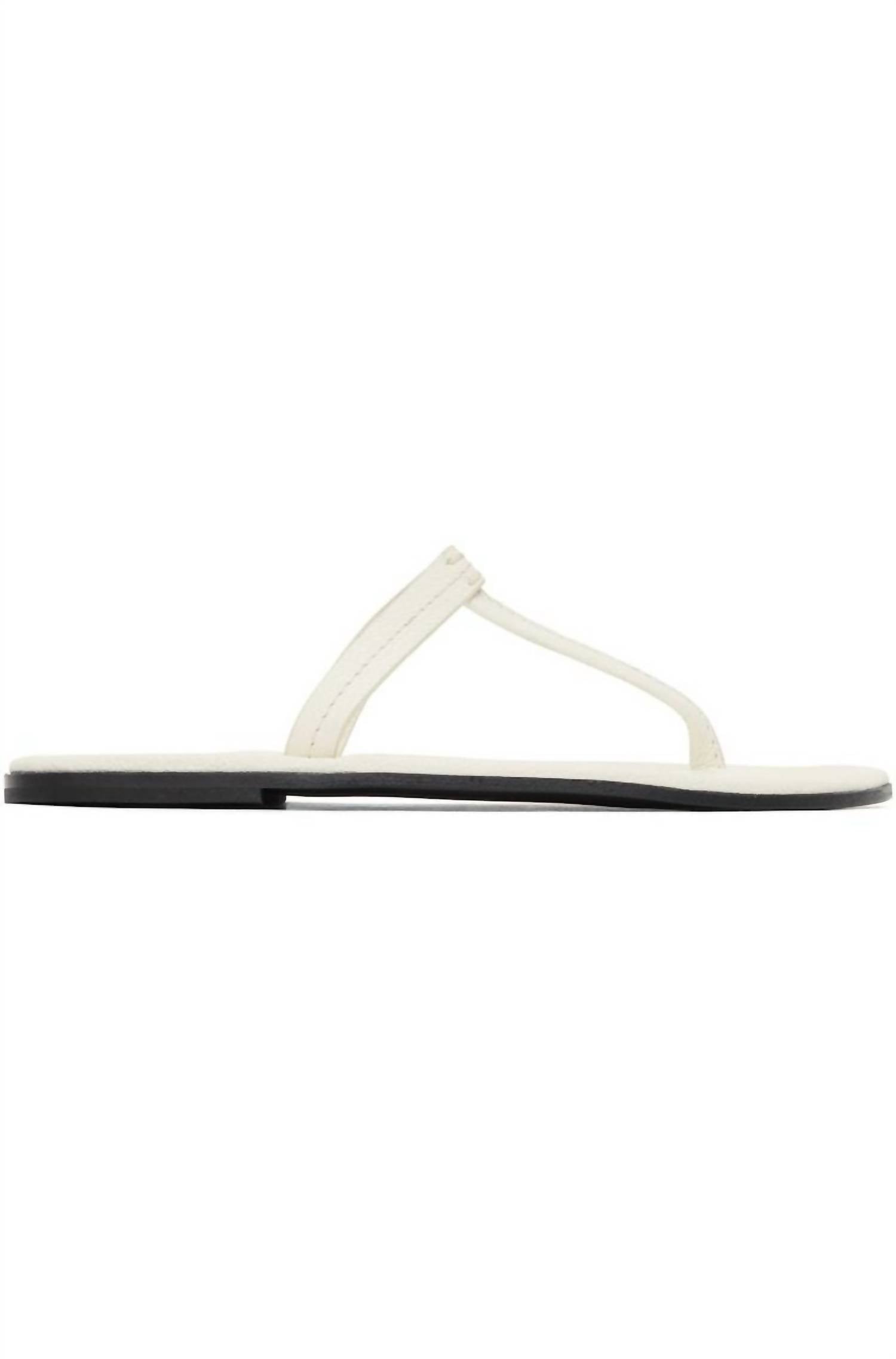This sandal will take you from brunch to dinner and everything in between. Elevate your warm-weather style with the Women's T Strap Sandal by TOTEME, crafted in a sophisticated off-white leather. Featuring slim T-bar straps and exposed topstitching, these sandals showcase a round open toe design for a timeless look. Made in Italy, they have wide cushioned soles with anti-slip rubber inserts for added comfort and security. The leather upper, lining, insole, and sole ensure longevity and luxury in each step you take.