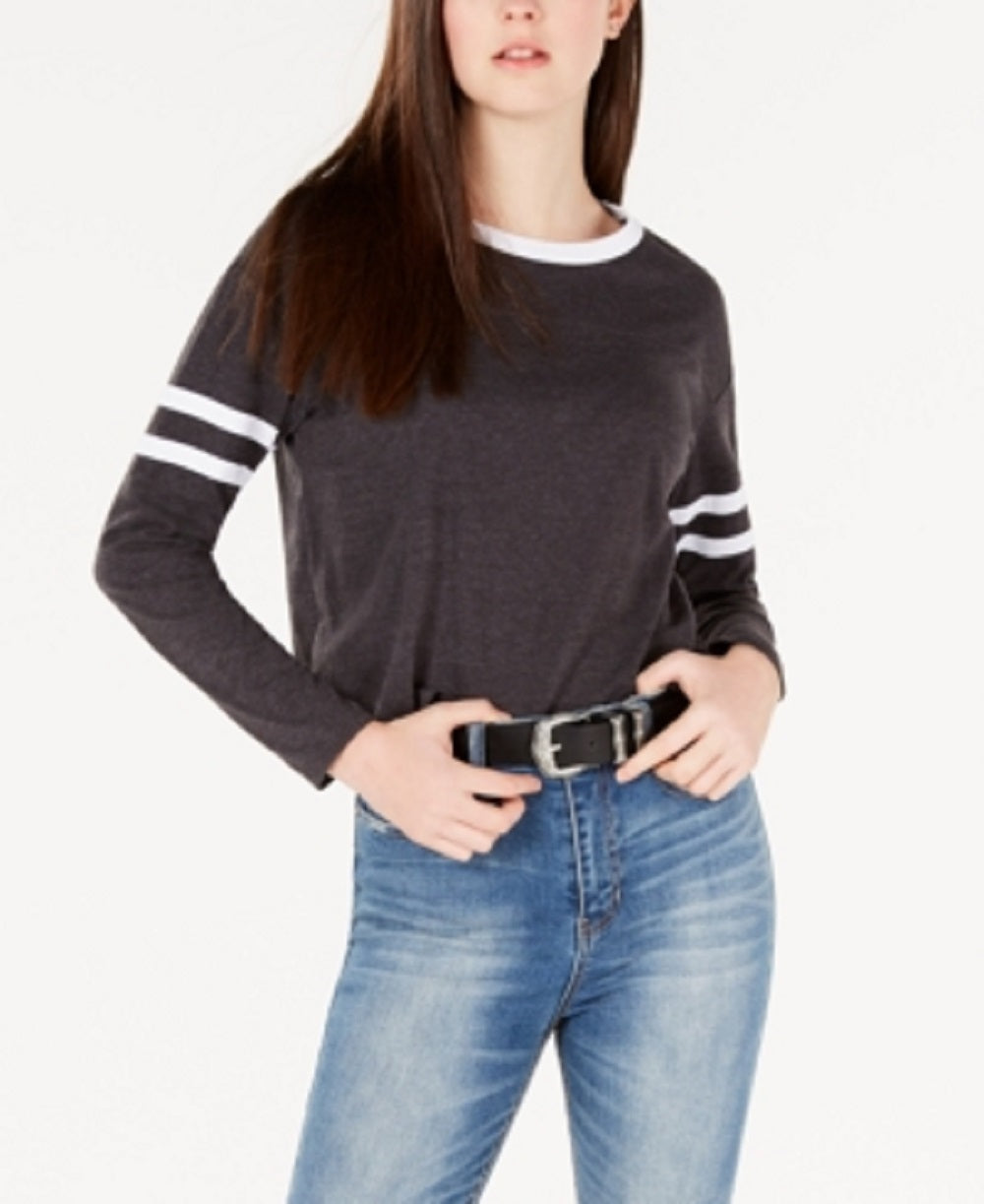 Show off your sweet and sporty side in Ultra Flirt's hip-grazing T-shirt designed with varsity stripes