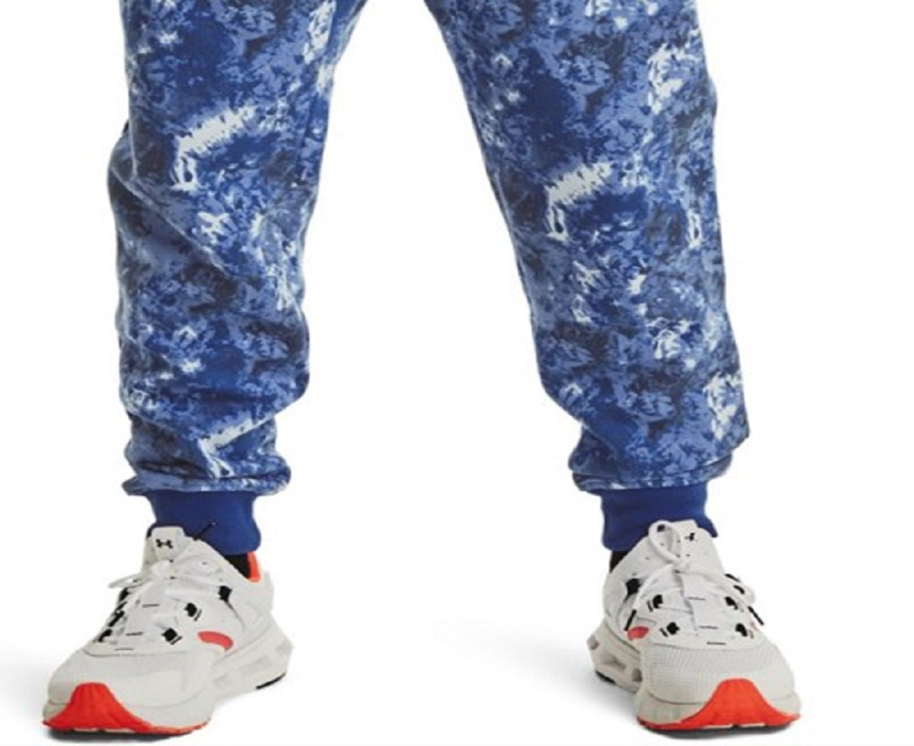 Made with an ultra-soft| mid-weight fleece with a brushed interior for extra warmth and finished with an updated camo print| these jogger pants by Under Armour offer superior comfort and edgy| urban style for your intense workouts. | Approx. inseam; 31| Tapered leg fit with ribbed cuffs| Encased elastic waistband with external drawcord