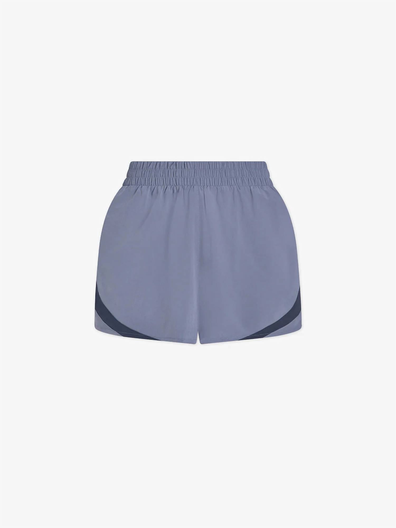 light weight and beyond comfortable, these athletic shorts are perfect for those warm weather days. Introducing the Barkley Running Short 2.5" by Varley, engineered for high performance in a trendy Blue Stone hue. These women's athletic shorts are crafted from sweat-wicking polyester, featuring an internal brief for support and fluted side hems for flexibility. The pull-on closure ensures ease of wear during any activity, while the design includes contrast panels for a stylish touch. Care instructions recommend machine washing and line drying to maintain their quality.