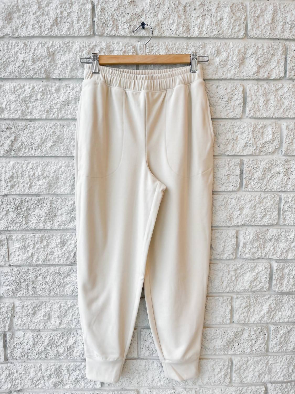 The Brushed Rib Slim Cuff Pant 25 by VARLEY in Cement Marl is perfect for effortless sophistication. Specially tailored with a high waist and slim fit, these pants feature a tapered leg that ends in a fitted ankle. This pull-on style offers convenience and is crafted as an activewear essential, complete with practical pockets. Make these solid-colored pants your go-to choice for both comfort and style in your wardrobe.