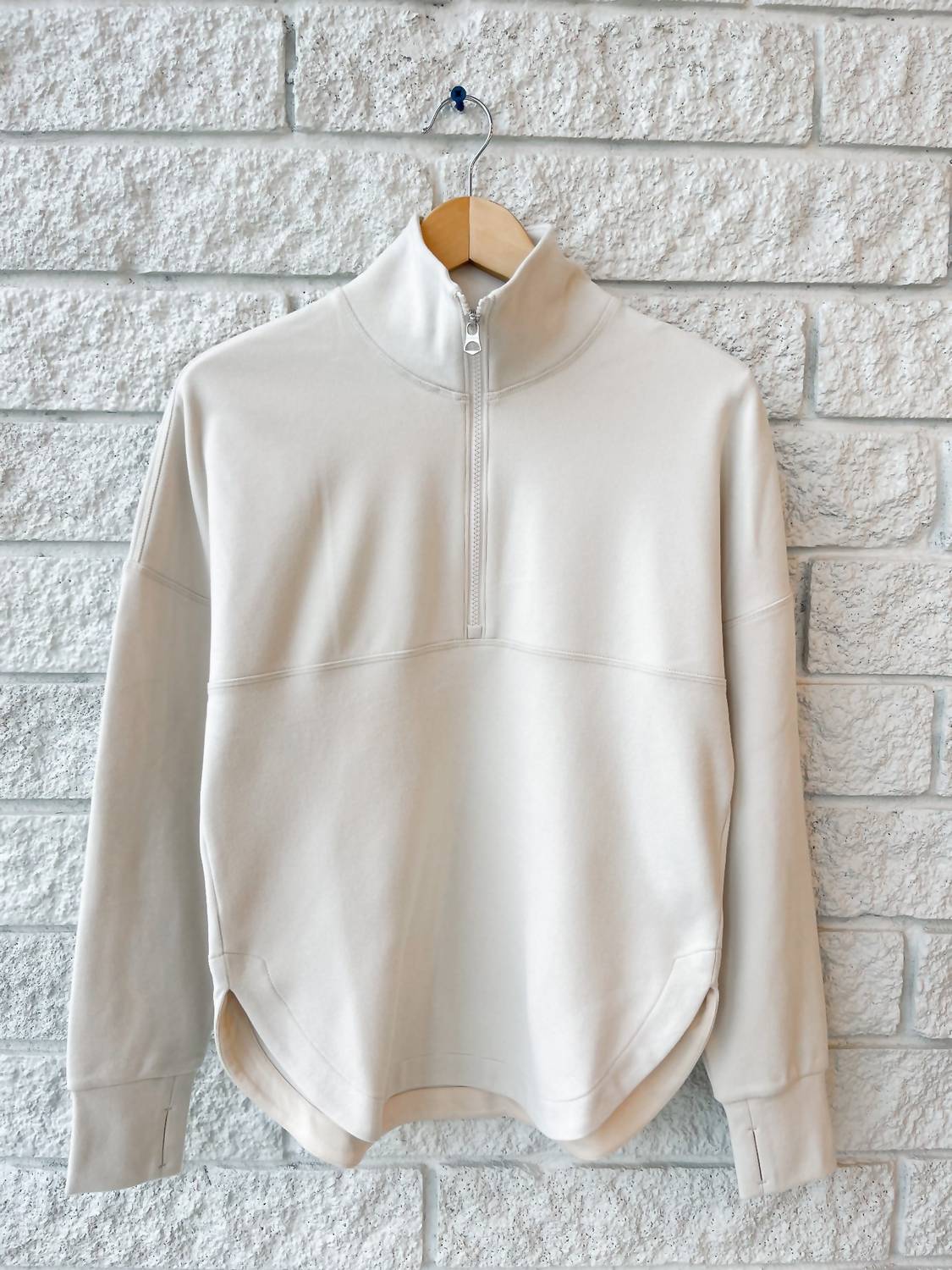 Whether you're running around town or lounging at home, this sweatshirt works for both. Discover the Varley Erina Half Zip Midlayer in Cement Marl, a perfect blend of style and comfort for women. This slim-fit sweatshirt features long sleeves with thumb holes and a practical half zip closure. Material: Made from high-quality Polyester. Neckline: Turtleneck. Ideal for adding a touch of elegance to your activewear collection.
