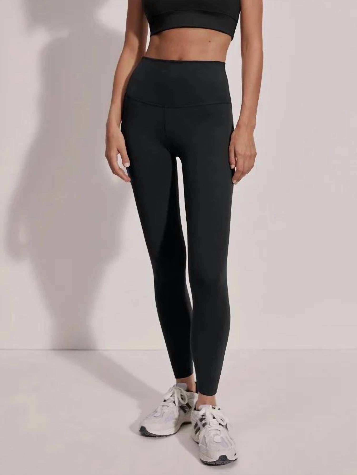 The legging you didn't know you needed and you won't want to take off. Experience the ultimate comfort with VARLEY's FreeSoft High Rise Legging 25 in black, designed for active women. Crafted from a blend of 75% polyester and 25% elastane, these leggings offer a buttery soft feel with light compression and four-way stretch, ensuring unrestricted movement. Featuring a seamless design with a rolled waistband and tapered inseam panel, they are moisture-wicking for all-day coolness. Closure: Pull on. Care: Machine wash. Studio model is 5'10" with a 33" bust, 25" waist, and 37" hips, wearing a size small.