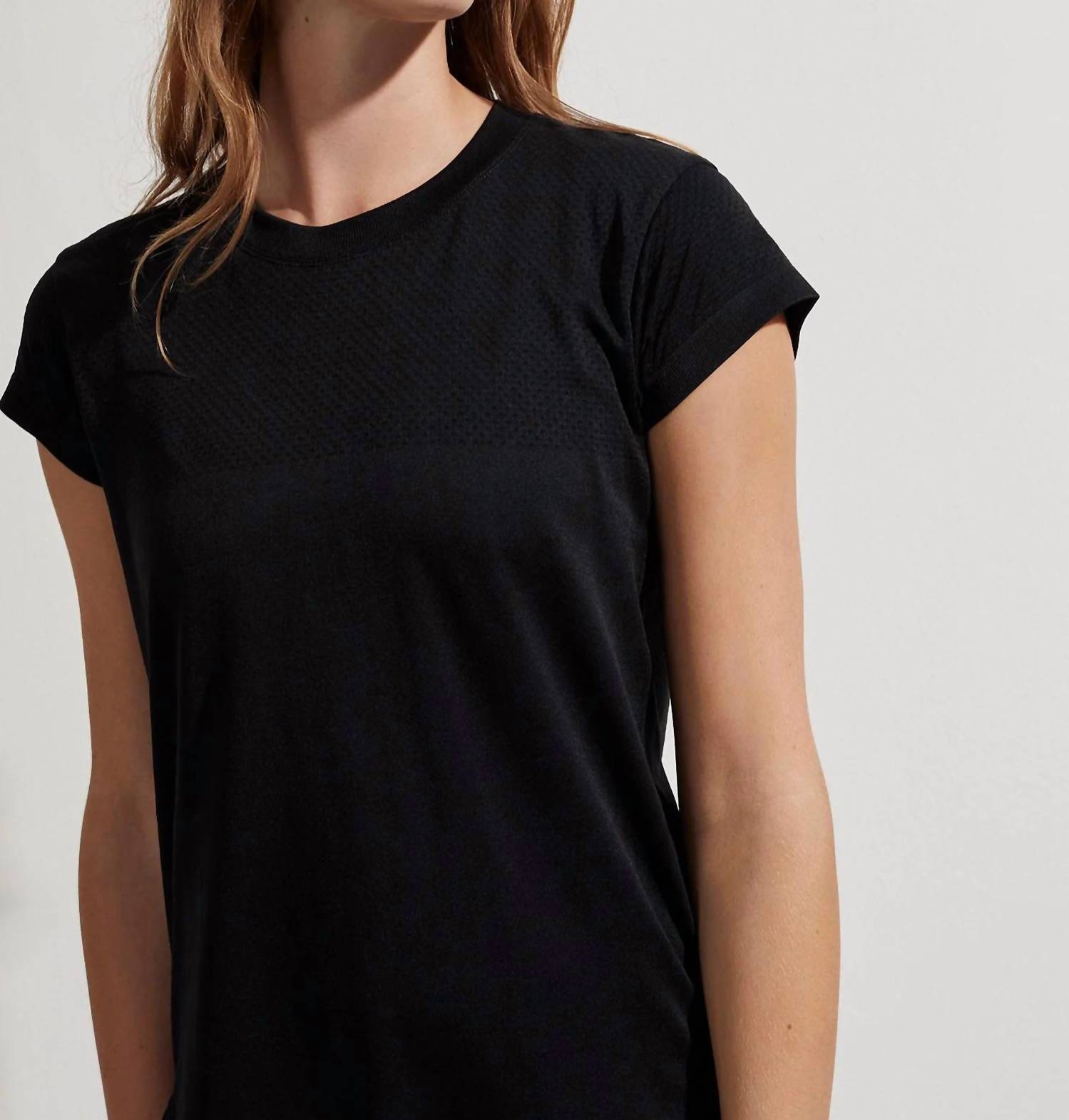 The short sleeve tee you'll want in every color. This short sleeve tee features a longline body, deep scooped hem and subtle textured perforation for enhanced breathability. The perfect combination of performance and contemporary, the Jade tee works for everything from hikes to brunches.
