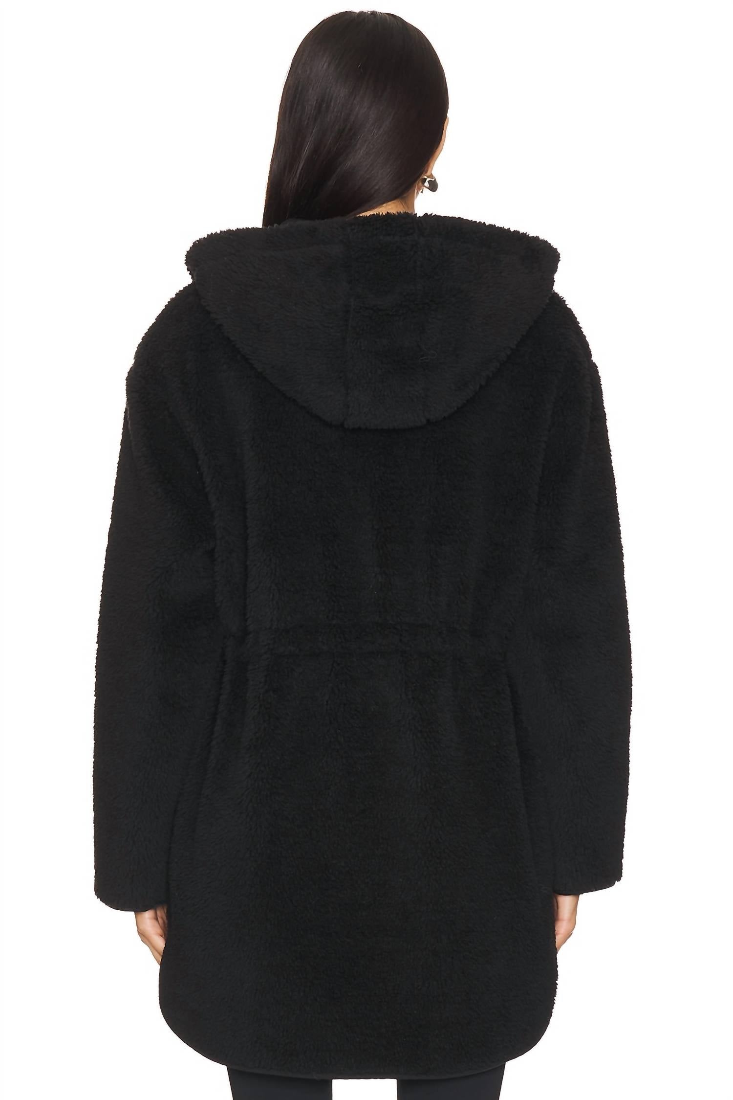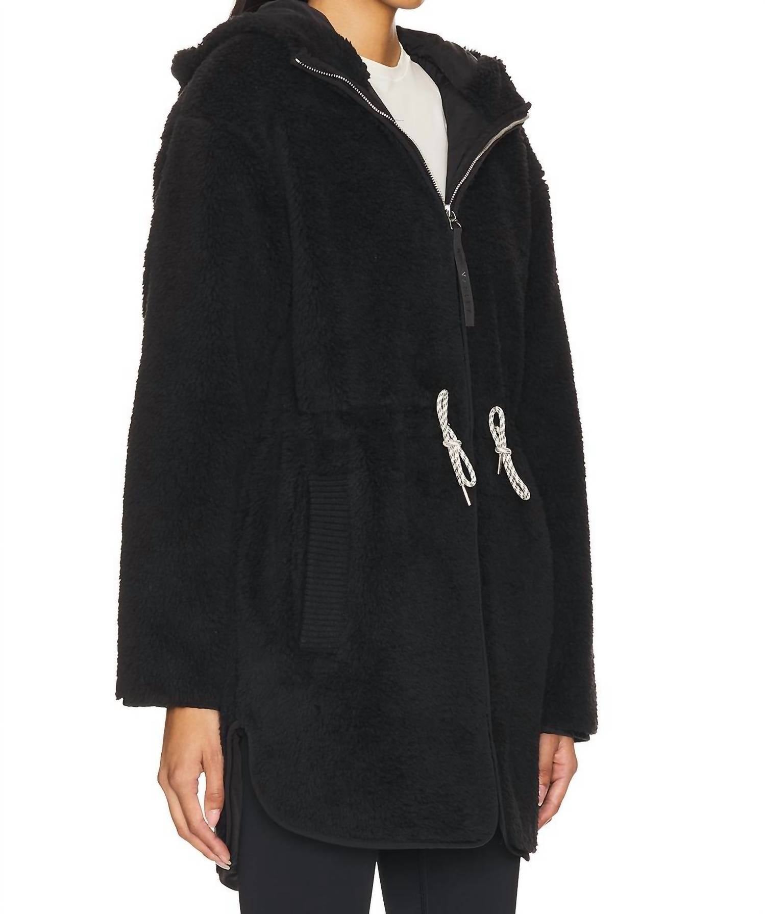 Introducing the VARLEY Lowens Sherpa Jacket for women, an ideal choice for winter vacations with its minimalist and chic black textured finish. This teddy jacket features a hooded neckline, long sleeves, and convenient pockets, offering both style and functionality. Crafted from polyester, it is designed with a sturdy zip closure for easy wear. Care for this jacket is simple with machine wash instructions, ensuring it stays looking fresh throughout the season.