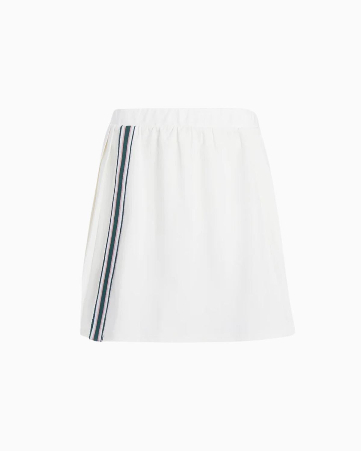 The cutest skort that combines style and functionality. Discover stylish versatility on and off the court with the Varley Netland High Rise Skort. Cut from an exceptionally-crafted fabric blend, it offers a flattering A-line silhouette with a pleated side and back, contrast stripe trim and front-split detailing. Boasting a high-rise waist and average length, it's perfect for pairing with a performance tank or lightweight knit for elevated sportswear style. Outer: 90% Recycled Polyester, 10% Elastane. Inner: 95% Polyester, 5% Elastane.