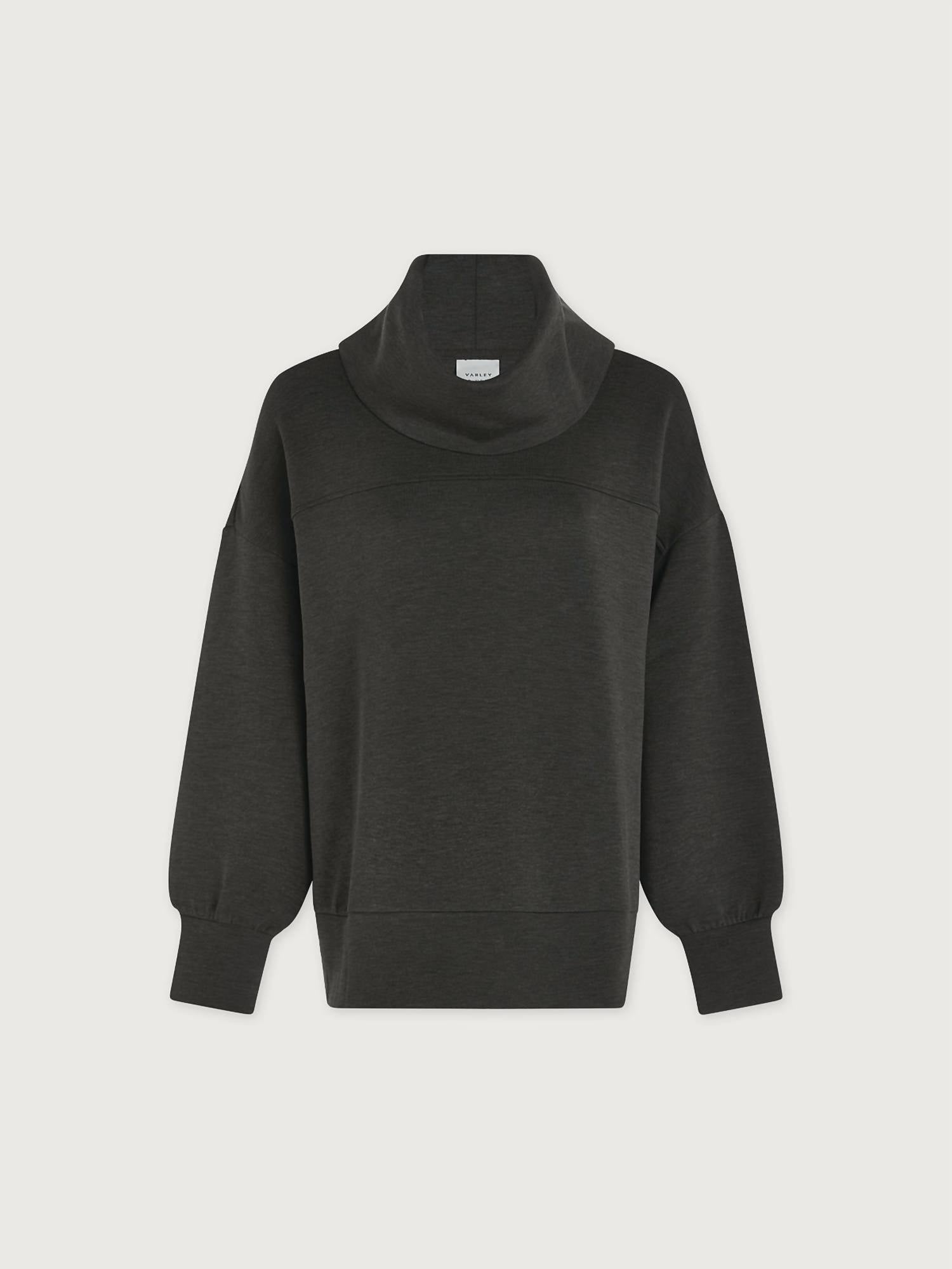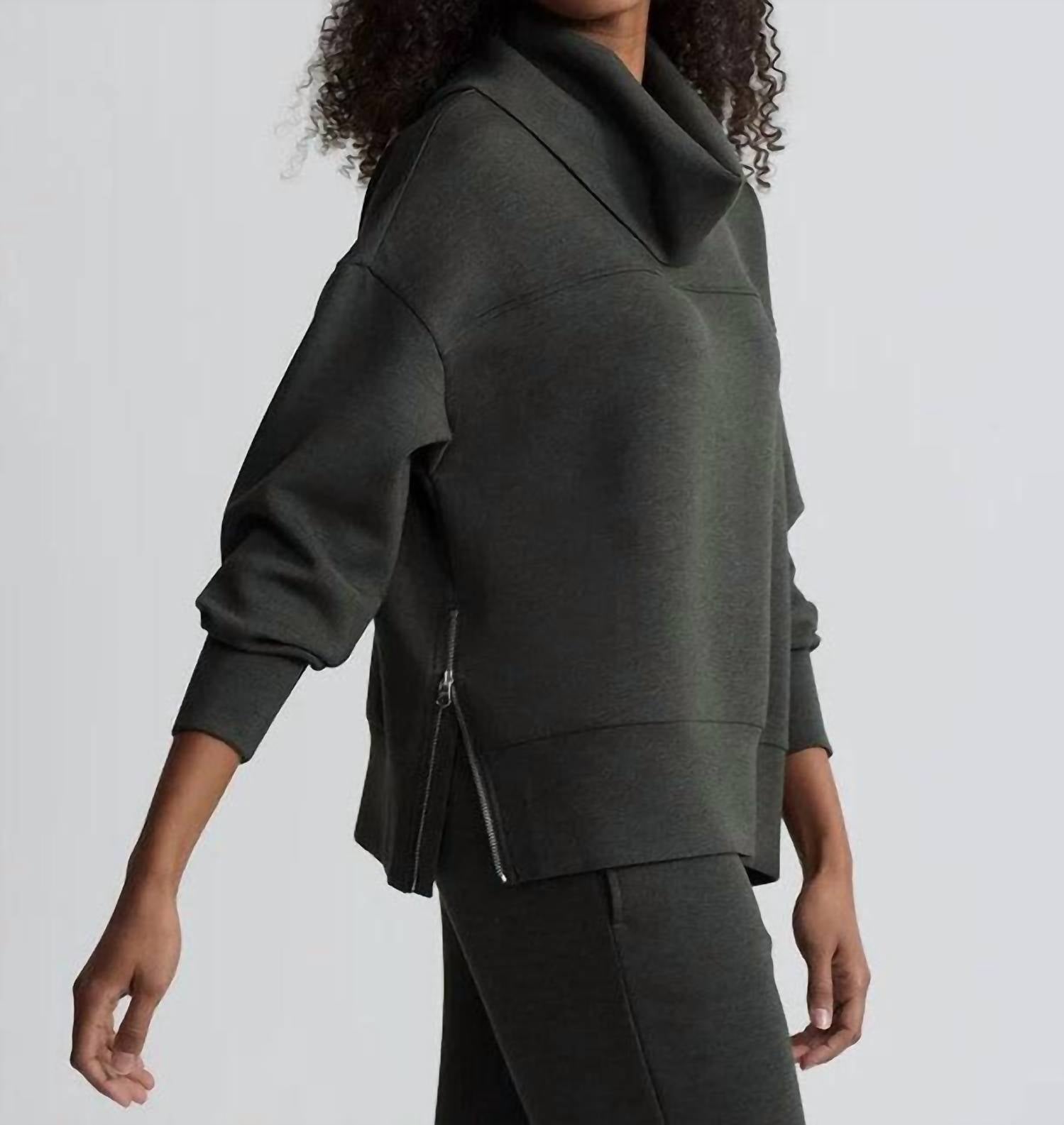 A classic staple that every closet needs. Elevate your wardrobe with the Priya Longline Sweat by Varley, a standout piece in a chic Olive Marl hue. Crafted from a luxurious viscose blend, this women's oversized essential boasts long sleeves and a unique cowl neck for added flair. Designed with a dramatic, longline silhouette and featuring side zip detailing and dropped shoulders, it offers an effortlessly stylish look. Closure: Pull on. Care for this solid pattern sweat by machine washing and laying flat to dry.