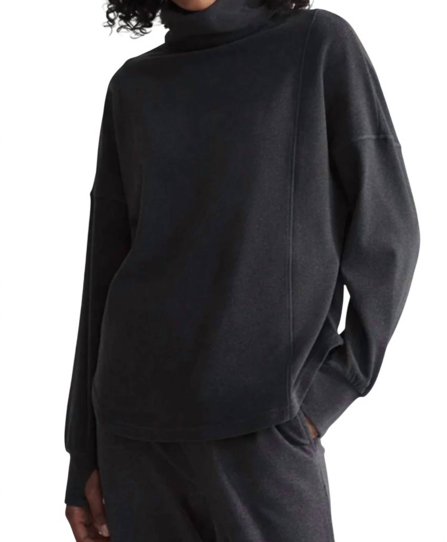 Cozy fabric, impeccable design - Meet the sweatshirt that you'll never want to take off. Introducing the Rainer Roll Neck Midlayer Sweatshirt by VARLEY, a stylish and cozy addition to your wardrobe in Black Marl. This sweatshirt features long sleeves and a turtleneck design in a relaxed, oversized fit with dropped armholes and a dipped hem. Crafted from 90% Polyester and 10% Spandex, it offers a blend of warmth and comfort, perfect for layering with your favorite pieces. Enjoy the convenience of a pull-on closure and easy maintenance with machine wash care instructions.