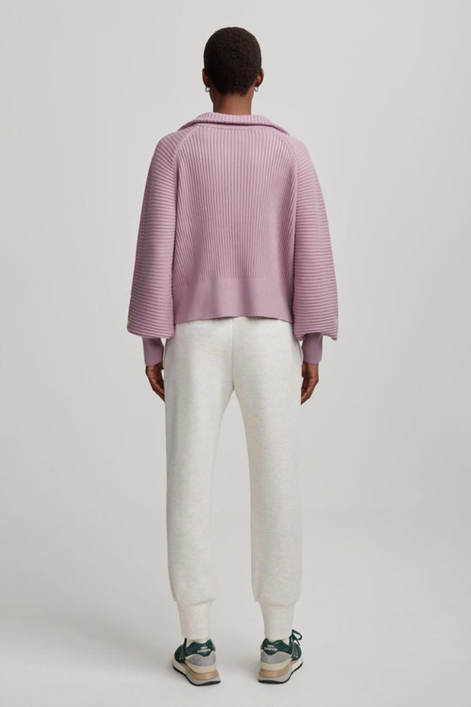 Half-zip. Balloon sleeves and a directional rib pattern elevate the design. The Reid is cut for a boxy silhouette. 44% Viscose, 28% Nylon, 28% Polyester. Wash with similar colours, fasten zips before washing, dry flat, reshape whilst damp.