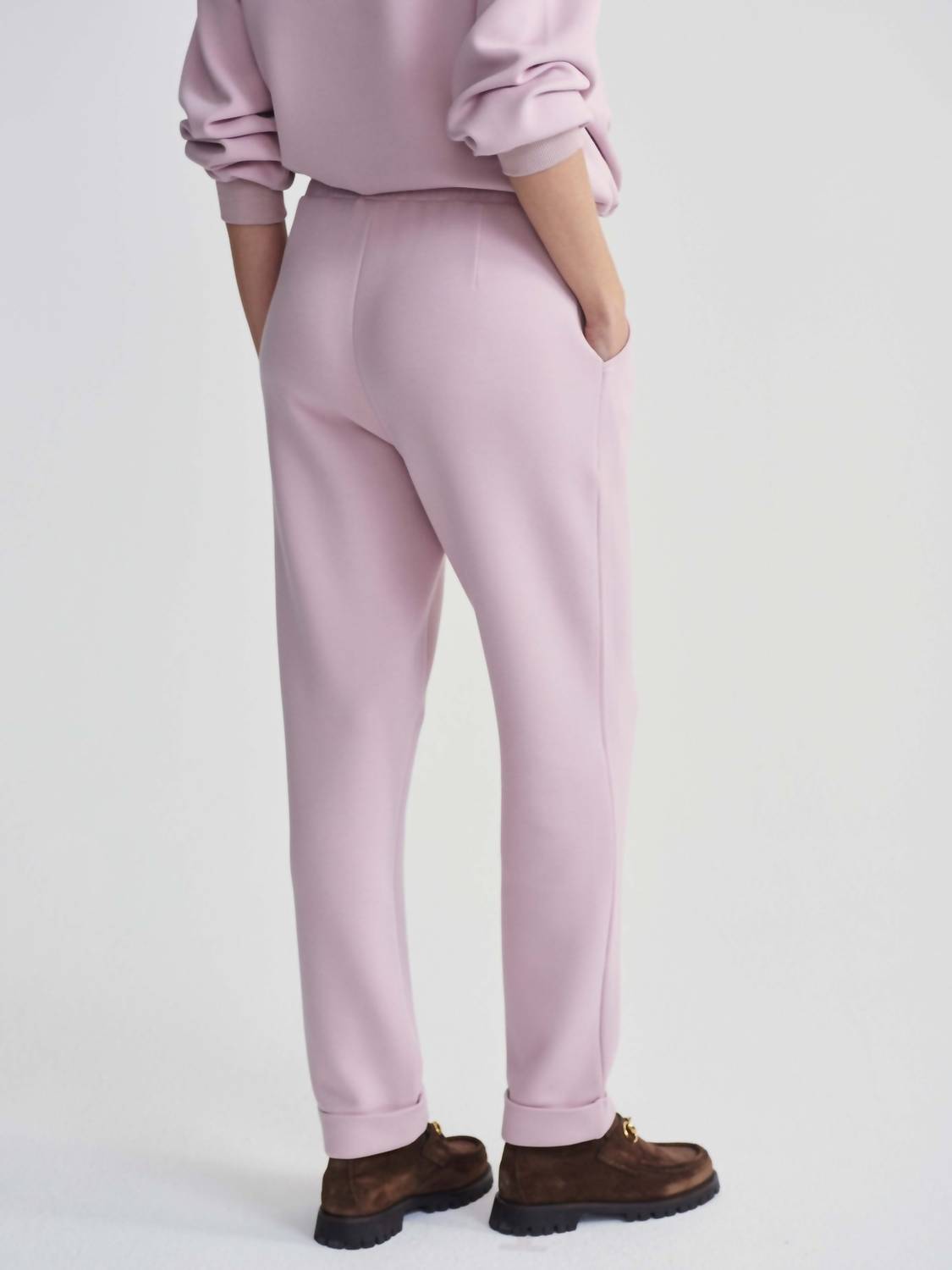 Enhance your wardrobe with this trendy cropped number, designed to blend style and practicality. The comfortable fit allows for easy all-day wear. The perfect length to pair with your favorite mules. Introducing the Rolled Cuff Sweatpants by VARLEY in a chic Burnished Lilac, perfect for adding a playful touch to your wardrobe. These high-rise pants come with a drawstring waistband and feature a slim fit with tapered legs, complemented by stylish rolled cuffs. Crafted from 72% Viscose, 23% Polyester, and 5% Elastane, these pants offer comfort with their easy pull-on style and practical slanted side pockets. Care: Machine wash cold.