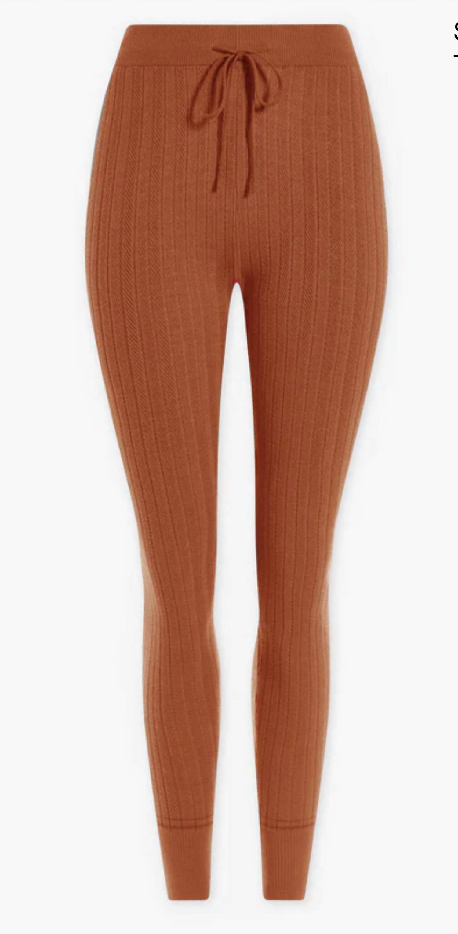 Introducing the Wheatly Knit Legging by VARLEY, a must-have for your essentials collection in a striking Rust hue. Crafted from soft viscose yarn, these leggings feature a textured herringbone rib pattern and a high-rise, pull-on closure for a secure fit. With a skinny leg style and a slim fit, they offer a sleek silhouette perfect for layering during alpine adventures.