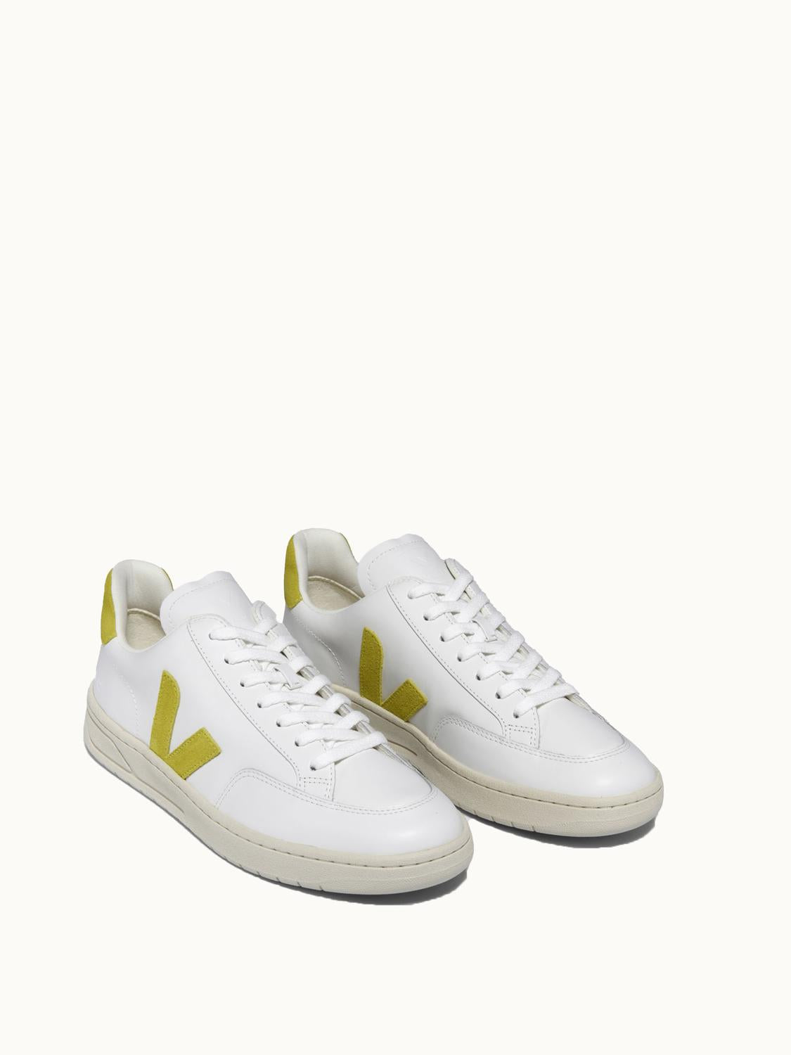 When fashion and function come together seamlessly. Crafted for the eco-conscious fashionista, the VEJA V-12 Leather Sneakers in Extra-White Liquor embody both style and sustainability. Composed of ecological materials and featuring a leather upper accented with a signature suede logo V, these sneakers deliver timeless appeal. The lace-up design ensures a secure fit, making them a chic and eco-friendly addition to your footwear collection. Ideal for women who value both fashion and the environment.