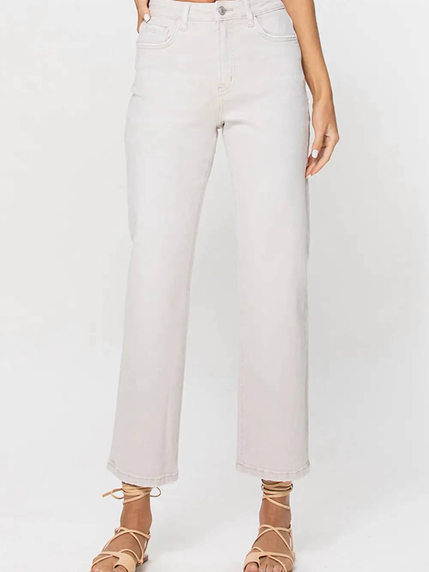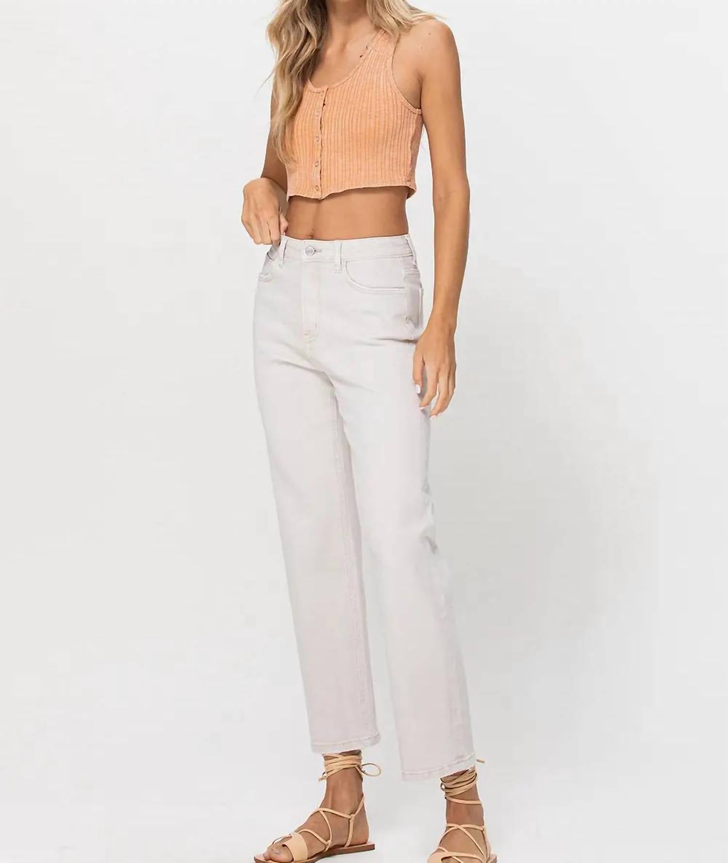 Pair these straight leg jeans with flats, sandals or even heels! You can't go wrong. These super high-waisted jeans feature a relaxed, straight fit with a cropped length and comfort stretch denim for all-day wear. Crafted from a blend of 94% cotton, 4% polyester, and 2% spandex, they boast a button closure and five functional pockets. The inseam measures 27.5 inches, with a front rise of 11.5 inches, and they are easy to maintain with a machine wash.