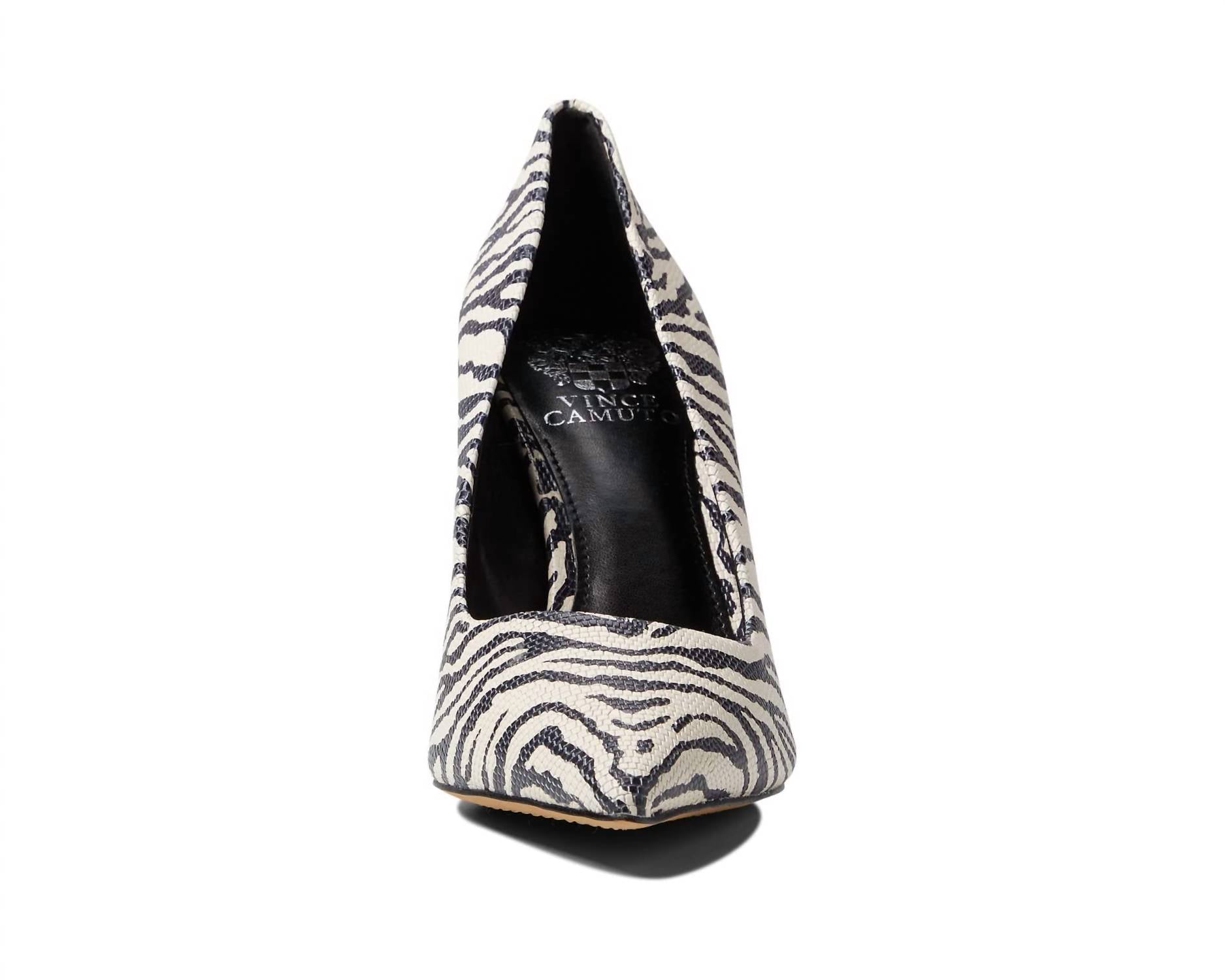 Eye-catching printed leather upper. Synthetic lining and insole. Easy slip-on construction. Pointy toe. Hourglass heel. Synthetic outsole. Imported. Weight of footwear is based on a single item, not a pair. Measurements: Heel Height: 3.5 in. Single Shoe Weight: 0.48 oz.