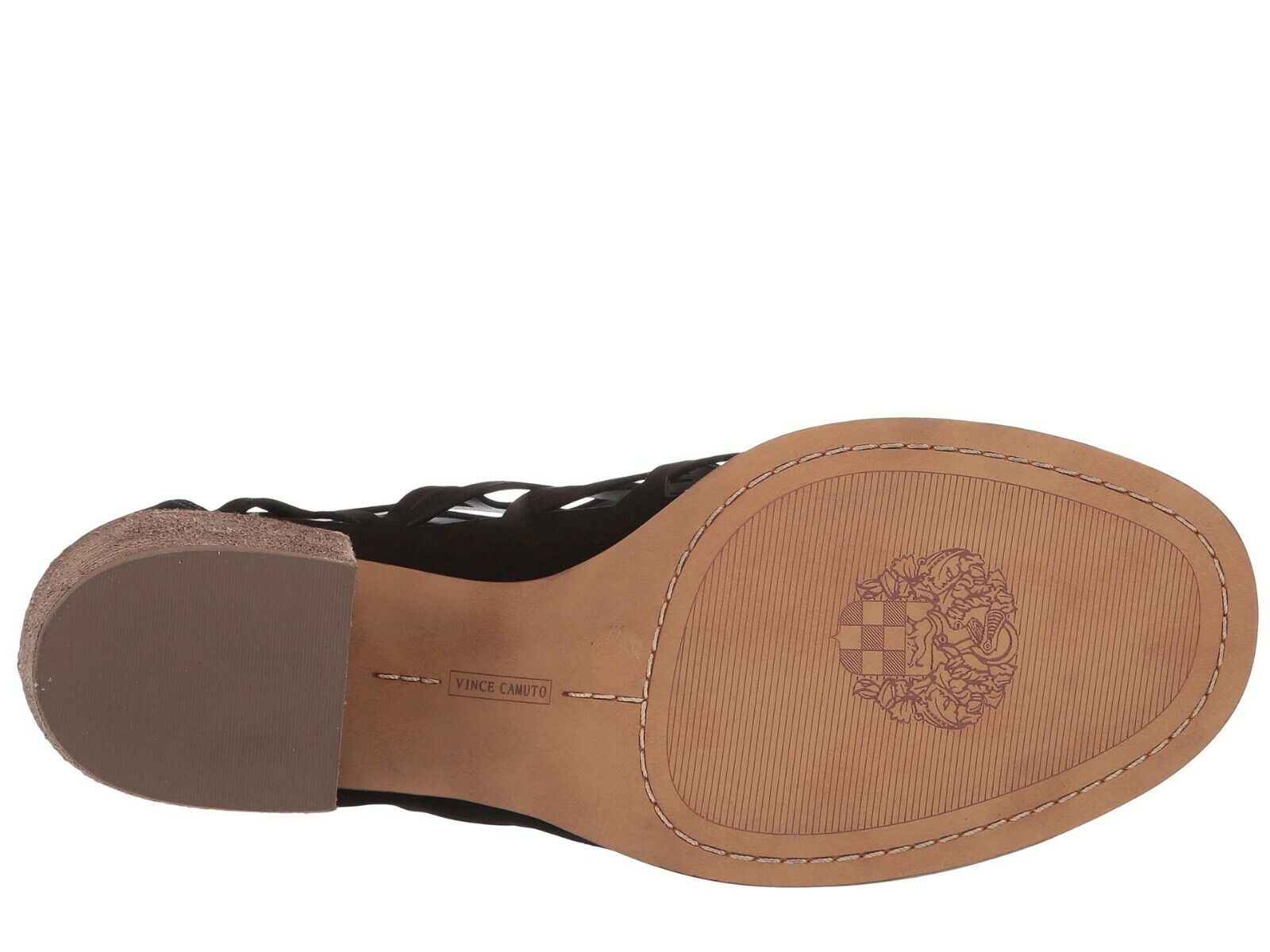 You are Buying A Brand New Pair of Authentic Vince Camuto Heels. Style #; VC-KEVSTONShoe; Kevston Color; Black Material; W. Nubuck Suggested Retail Price 119.00Description;All eyes on you when you enter the room with a chic Vince Camuto® Kevston Cutout Sandal.The flirty cutout sandal bootie is constructed from a leather| suede or nubuck upper that's perfect for any occasion.Open-toe design.Back zip closure at the ankle shaft.Lightly-padded| fixed footbed.Man-made lining and sole.Stacked block heel.Imported.Product measurements were taken using size 9| width M. Please note that measurements may vary by size.Weight of footwear is based on a single item| not a pair.Measurements;Heel Height; 3 inWeight; 12 ozCircumference; 9 1⁄4 inShaft; 4 1⁄4 inFrom Vince Camuto| the Kevston Nubuck Sandals features;Nubuck upperBack zip closureSynthetic liningManmade outsoleApprox. 3 heelImportedSIZE GUIDEWOMENS SHOESU.S. EU U.K INCHES CM4 34 2 8 1/4 214.5 34.5 2.5 8 1/2 21.65 35 3 8 5/8 21.95.5 35.5 3.5 8 3/4 22.26 36 4 9 22.96.5 36.5 4.5 9 1/8 23.27 37 5 9 1/4 23.57.5 37.5 5.5 9 1/2 24.18 38 6 9 5/8 24.48.5 38.5 6.5 9 3/4 24.89 39 7 10 25.49.5 39.5 7.5 10 1/8 25.710 40 8 10 1/4 2610.5 40.5 8.5 10 1/2 26.711 41 9 10 5/8 2711.5 41.5 9.5 10 3/4 27.312 42 10 11 27.913 43 11 11 1/4 28.614 44 12 11 5/8 29.8Limited Sizes and QuantityPlease Read note and Description| it Should Match with Photos Attached